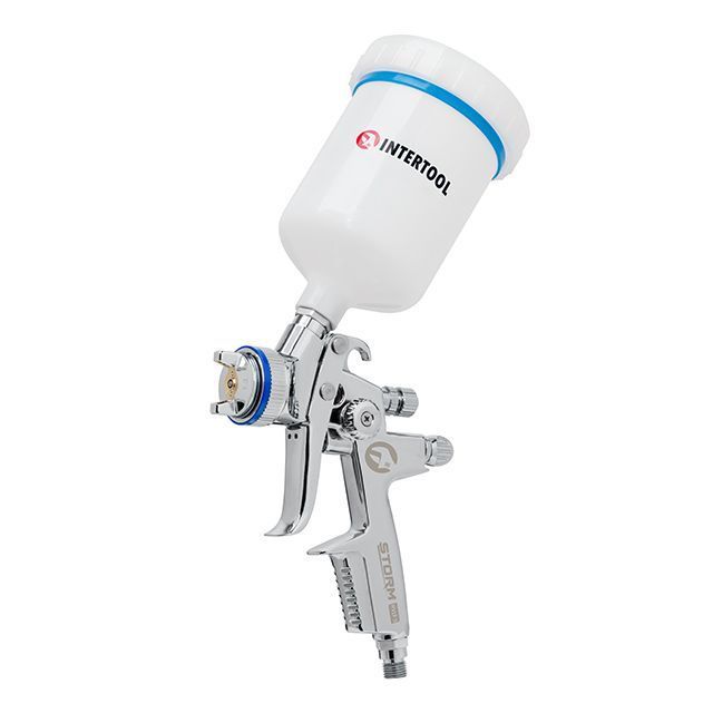 Краскопульт пневматический HVLP II, профессиональный, форсунка: 1,3 мм, верхний пластиковый бачок: 600 мл, 2 бар INTERTOOL PT-0105