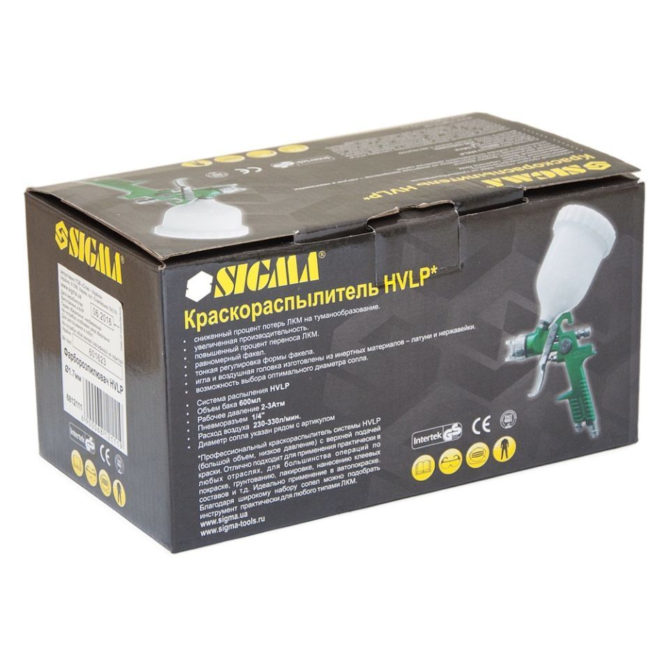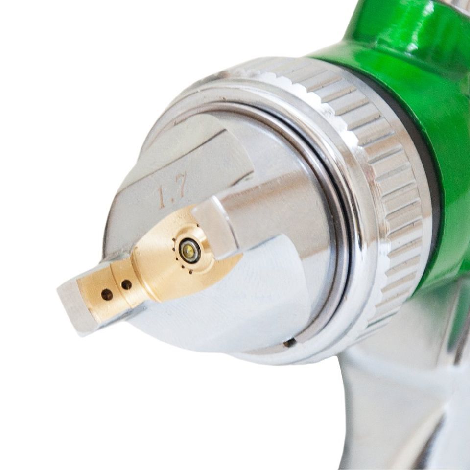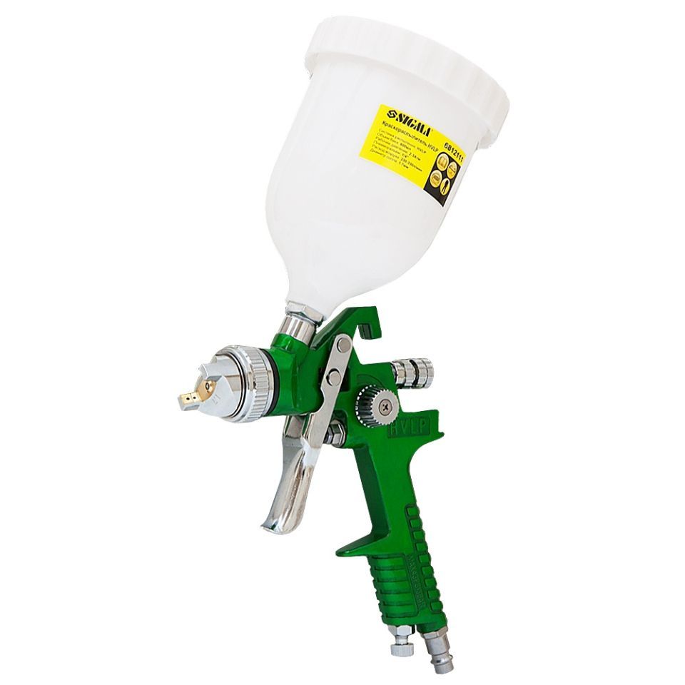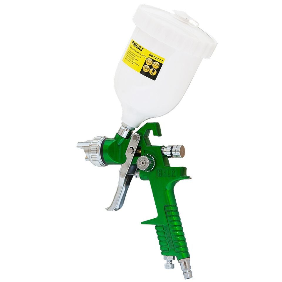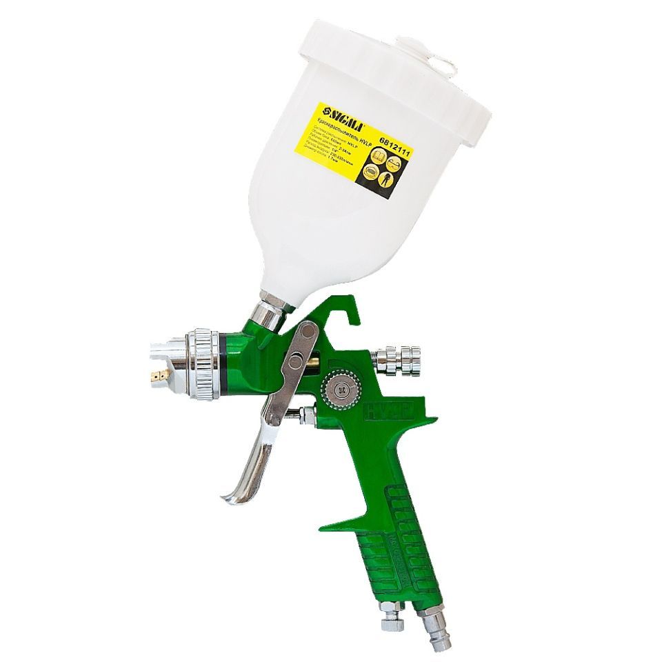 Профессиональный Краскораспылитель HVLP Ø1.7мм 140-280л/мин 3бар в/б (пласт) зелёный SIGMA (6812111) системы HVLP (большой объем, низкое давление) с верхней подачей краски.