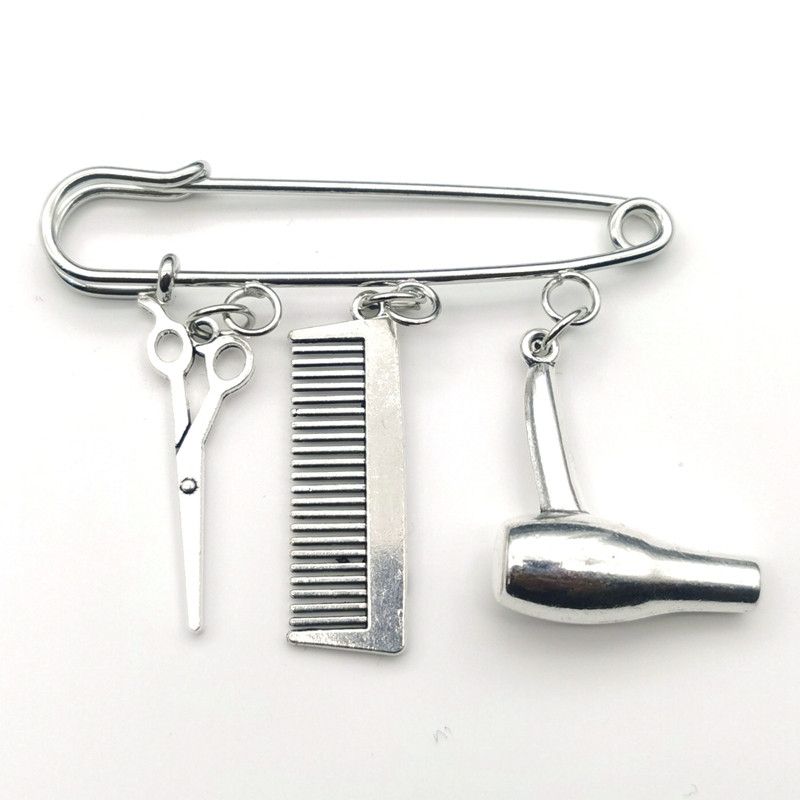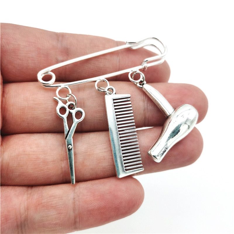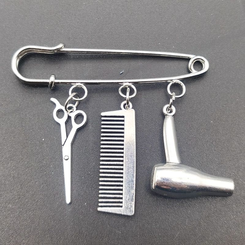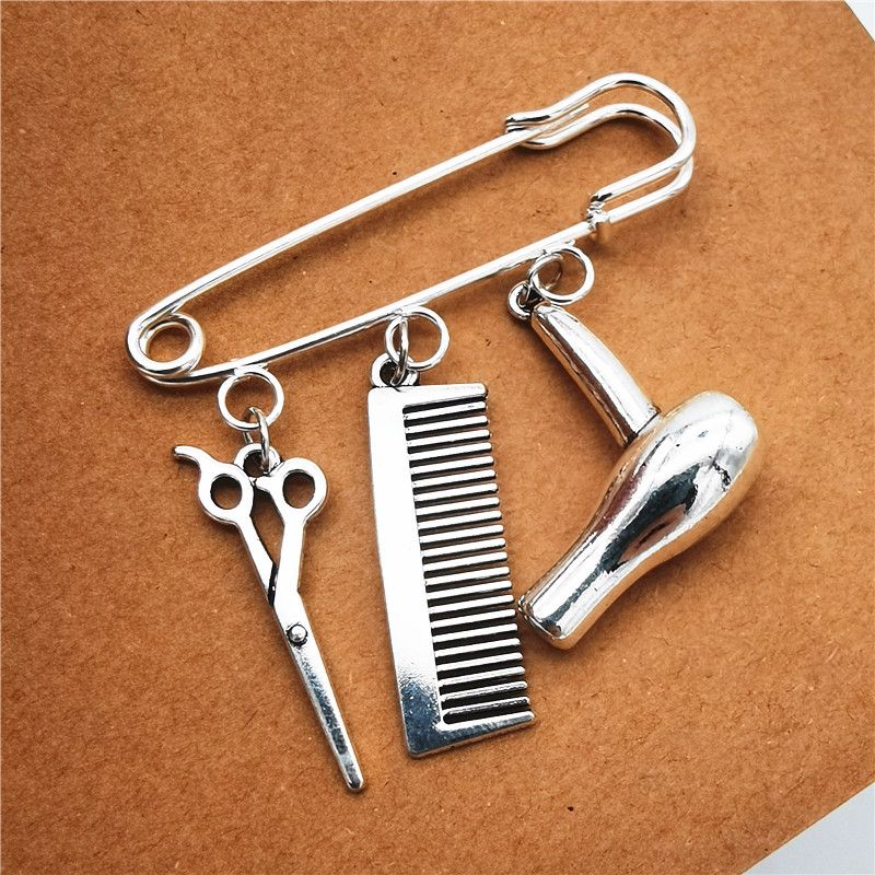Брошь парикмахерские инструменты ножницы в виде гребня фена