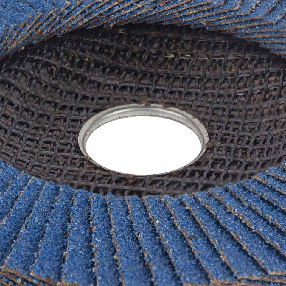 Электростатический способ нанесения равномерно распределяет абразив по всей рабочей поверхности лепесткового круга, что обеспечивает однородность поверхности обработки. Материал абразива - циркониевый электрокорунд (ZA; 38А).