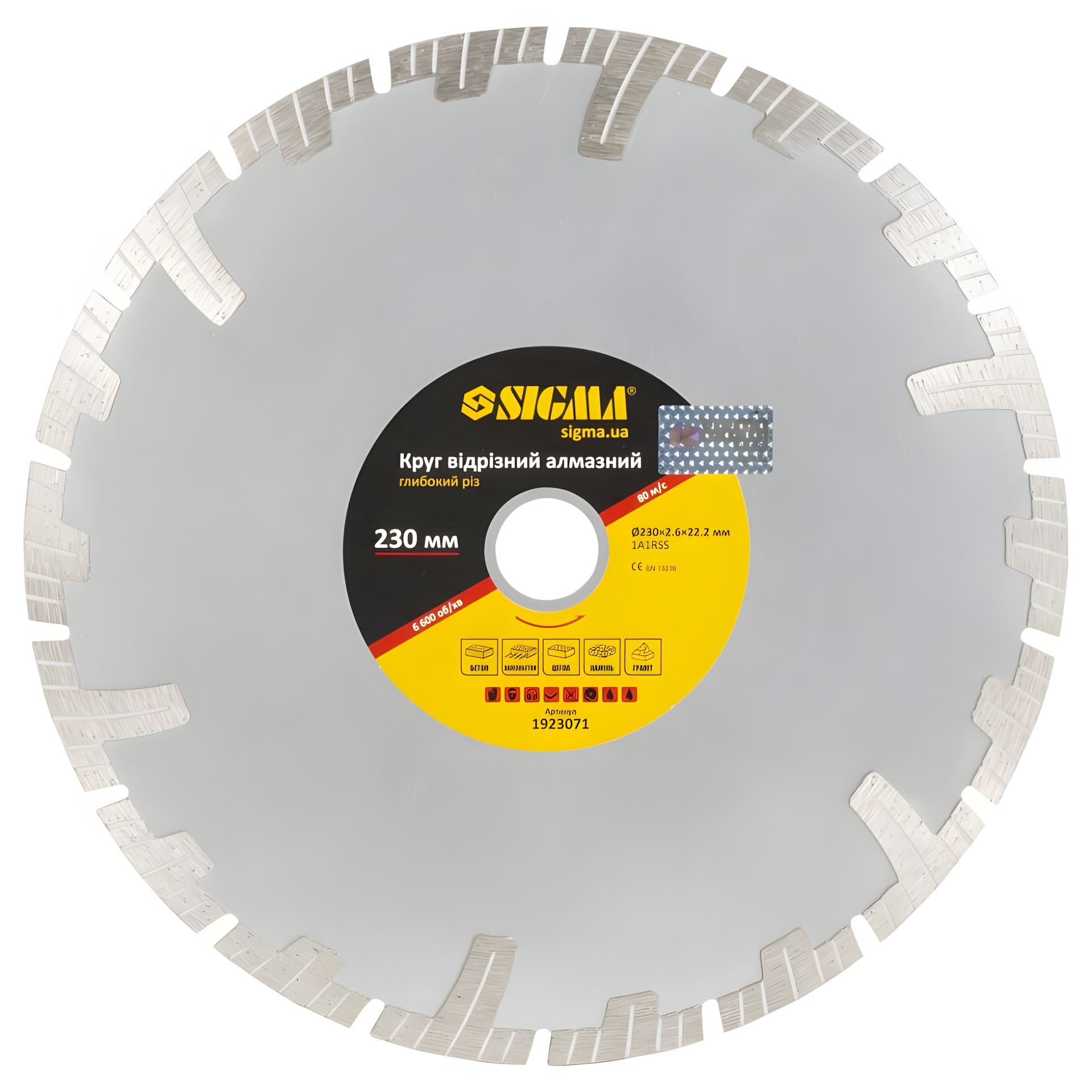 Алмазный отрезной круг Глубокий рез Ø230×22.2мм SIGMA 1923071