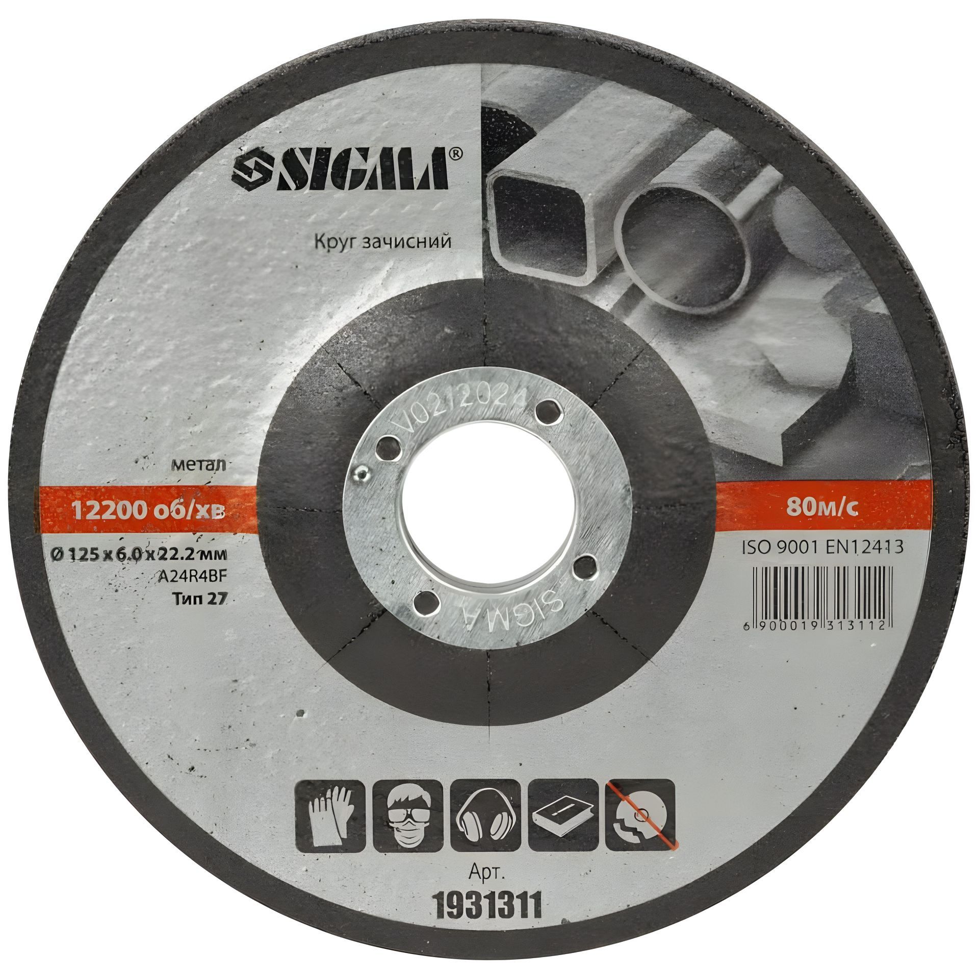 Зачистной круг по металлу Ø125×6.0×22.2мм, 12200об/мин SIGMA 1931311