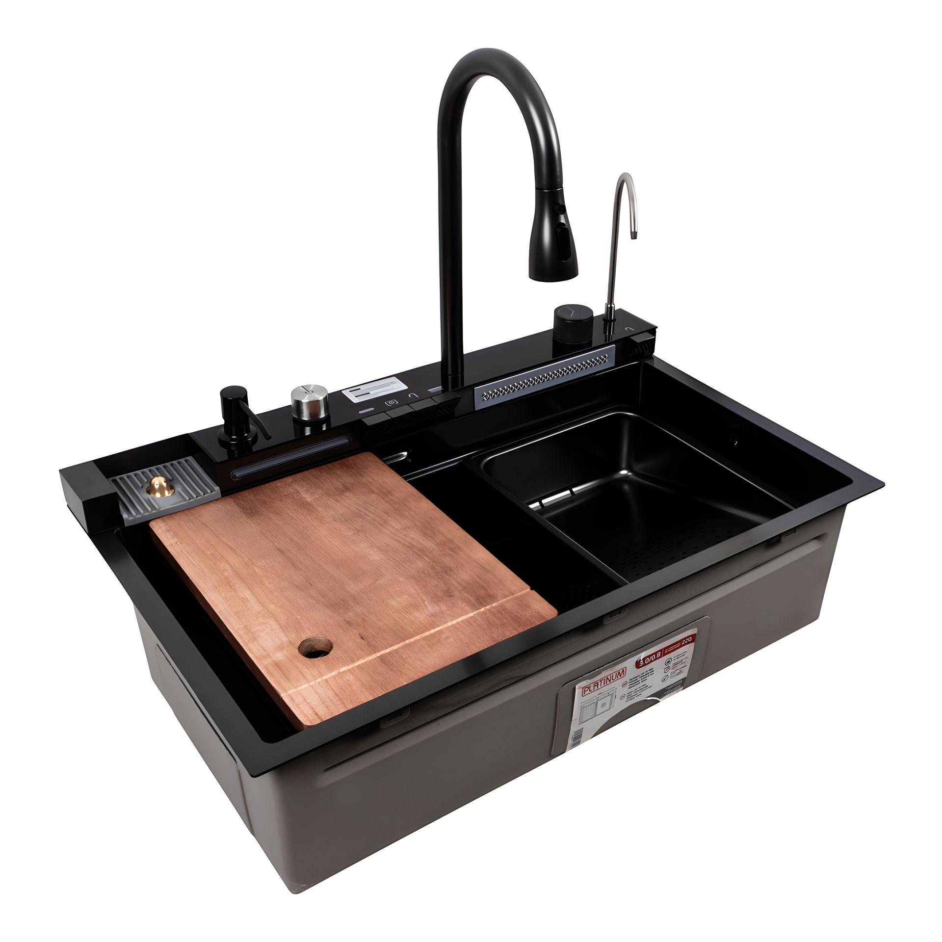 Черная кухонная мойка CM 75*46C PVD Platinum Handmade "ВОДОСПАД" (Декор)