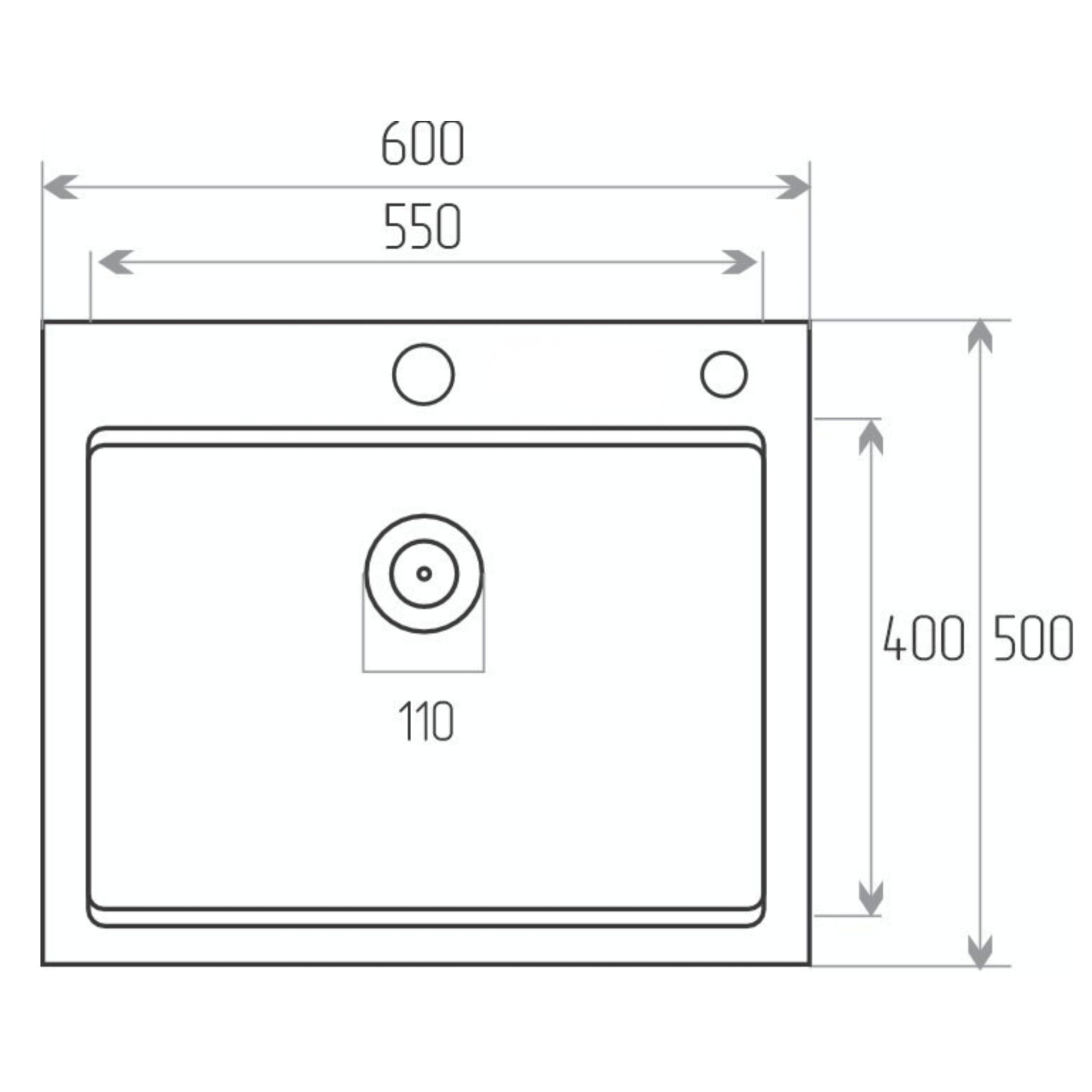 Размер мойки:600x500x230 мм