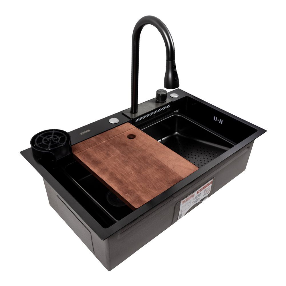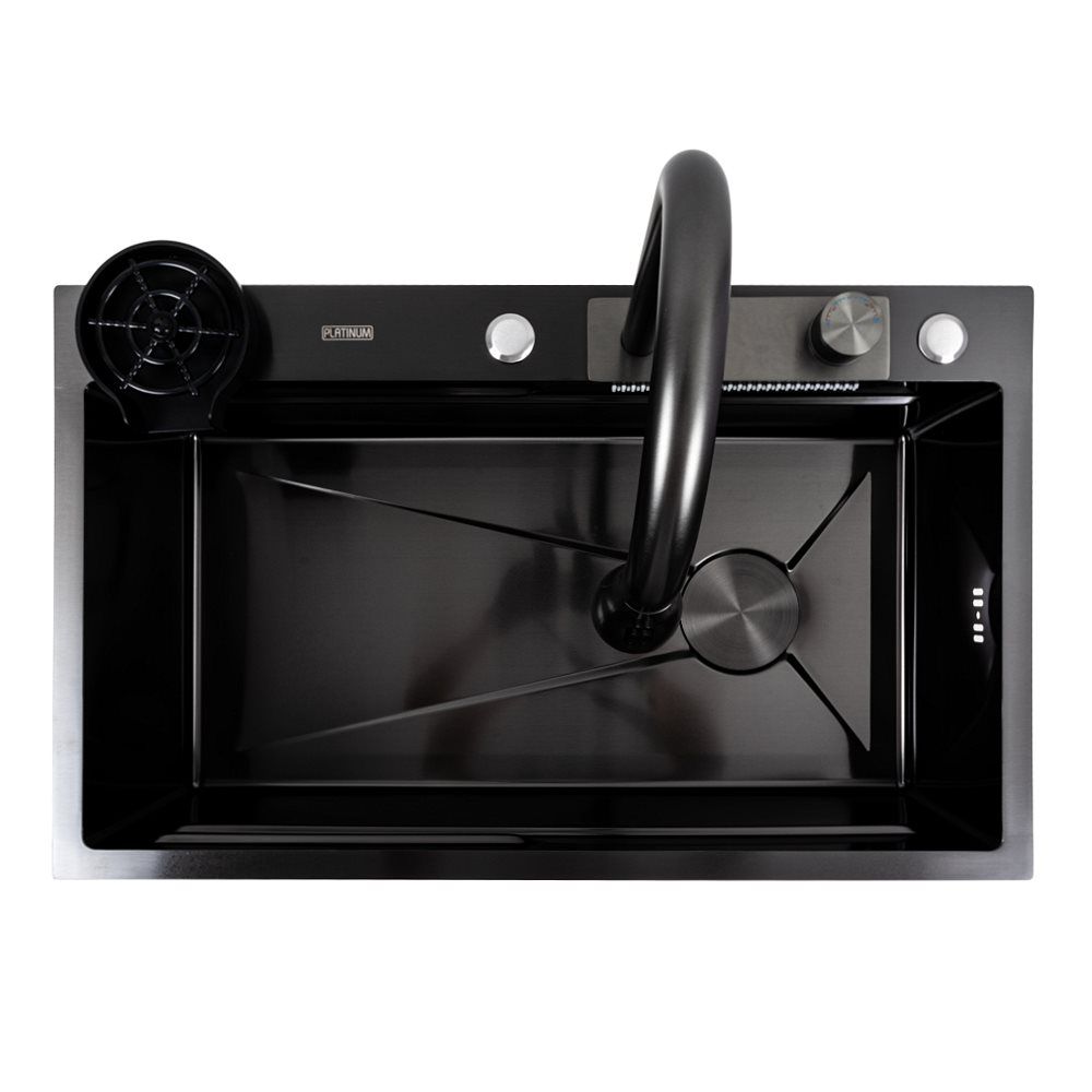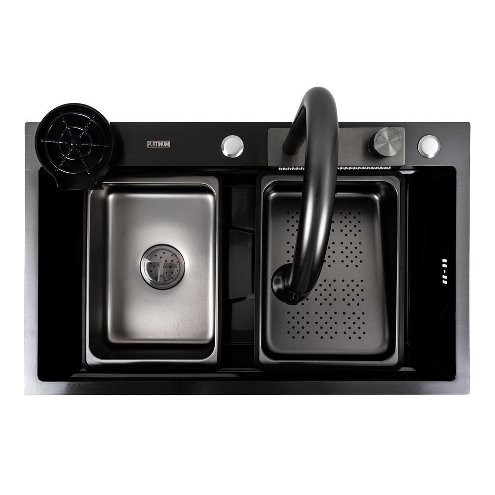 Кухонная PVD мойка чёрная CM 75*46A, Platinum Handmade "Водопад"