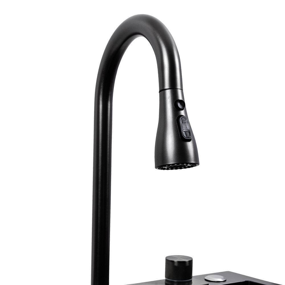 Черная кухонная мойка CM 75*46C PVD Platinum Handmade "ВОДОСПАД" (Декор)