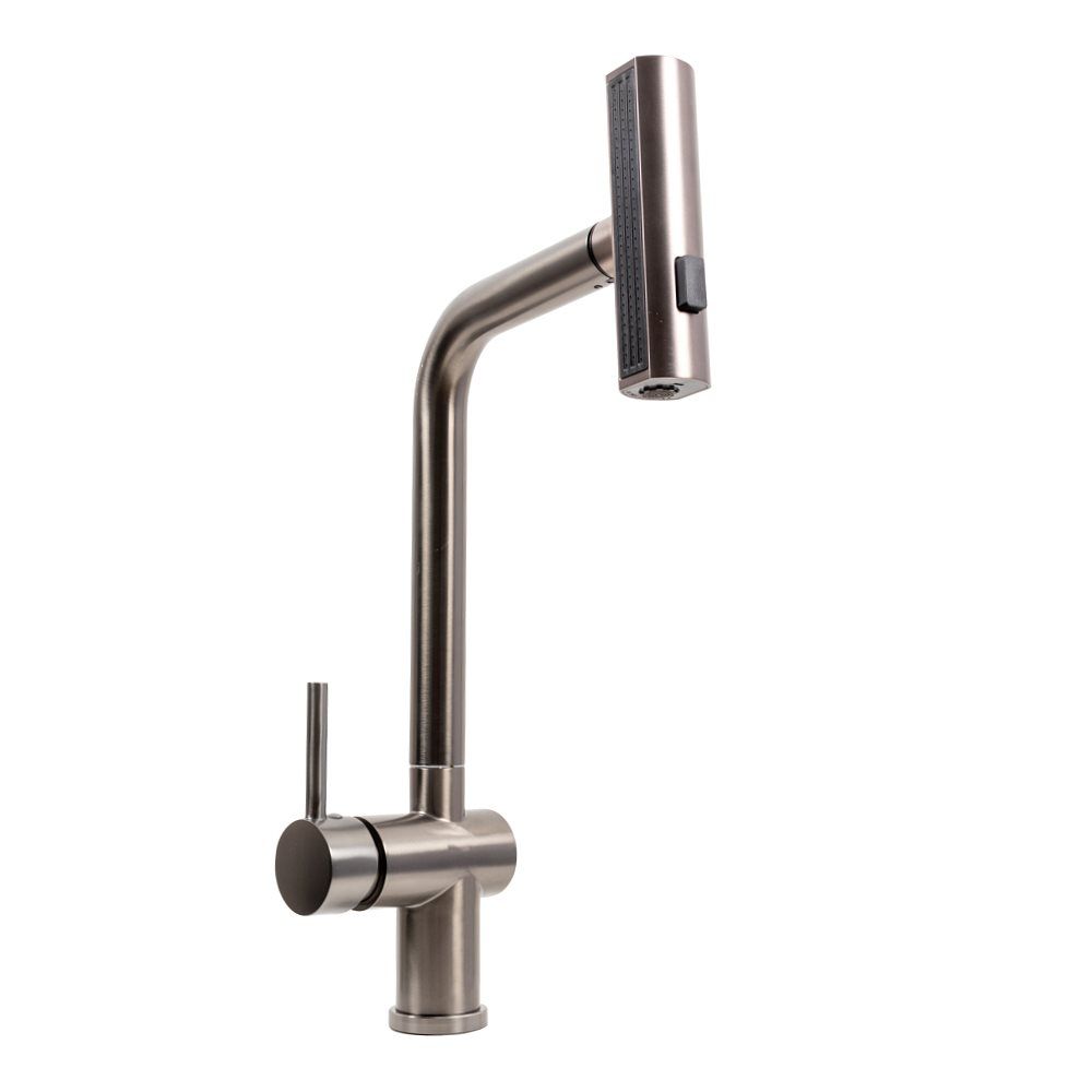 Смеситель Platinum PVD черный IB2013BR – это элегантное сочетание современного дизайна и передовых технологий. Выдвижной шланг и регулируемое излияние делают его незаменимым для тех, кто ценит комфорт и эффективность на кухне. Благодаря трем режимам воды, смеситель позволяет быстро адаптироваться к любой задаче – от нежной мойки фруктов до тщательной чистки посуды.