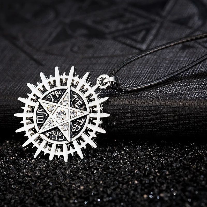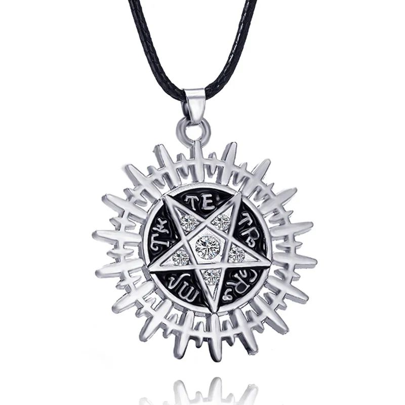 Амулет сверхъестественное пентаграмма в солнце с белыми кристаллами кулон