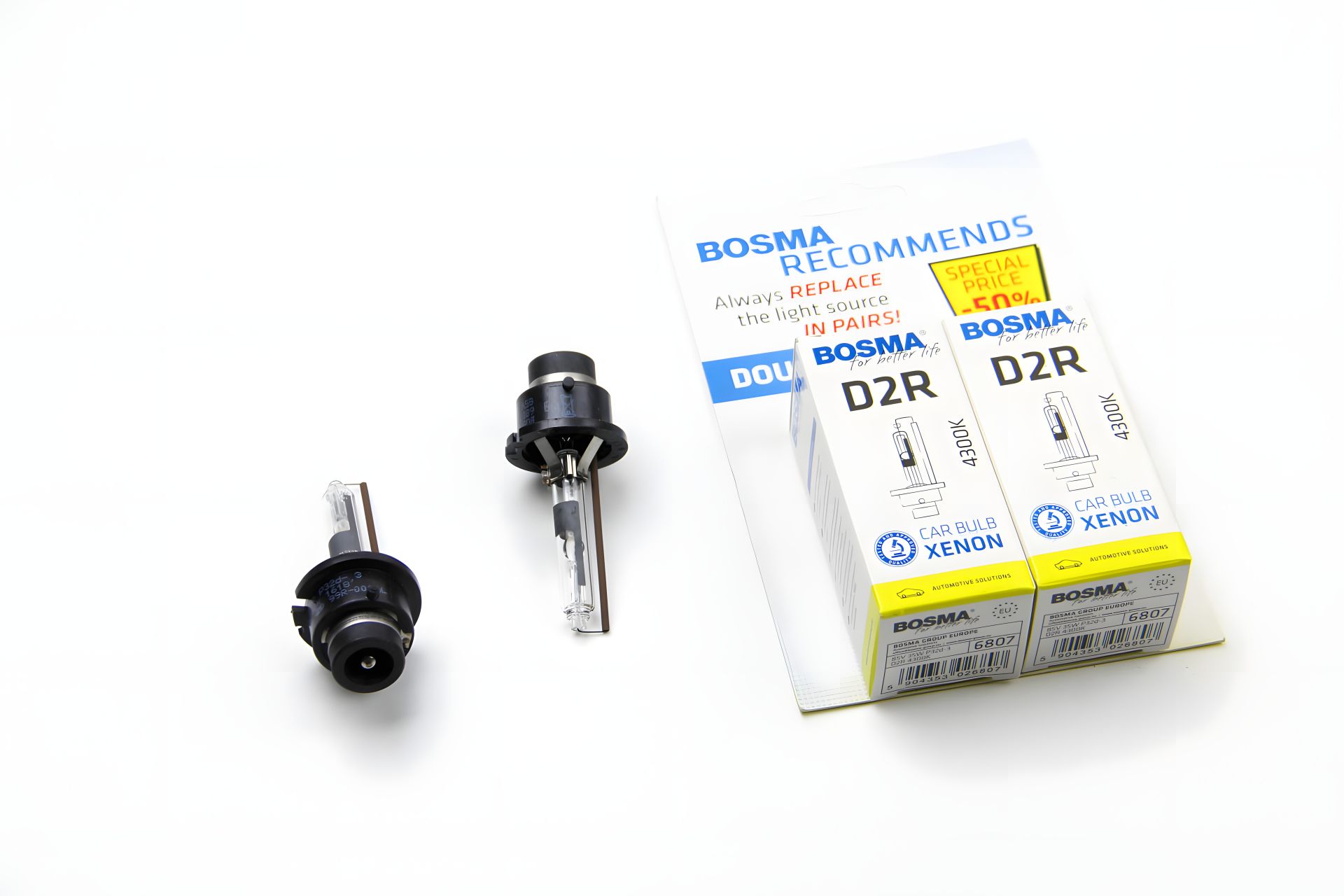 Ксеноновая лампа D2R XENON 85V 35W P32D-3 4300K, упаковка 2 шт, BOSMA (6807D)