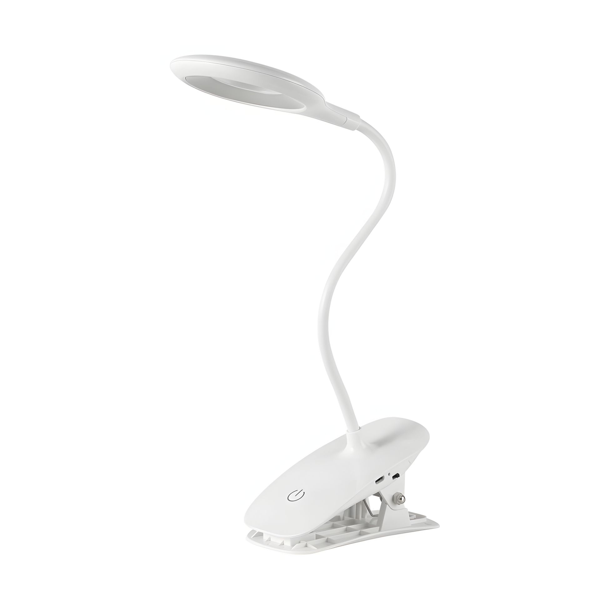 Гибкая настольная USB LED лампа с прищепкой и аккумулятором, трехрежимное освещение
