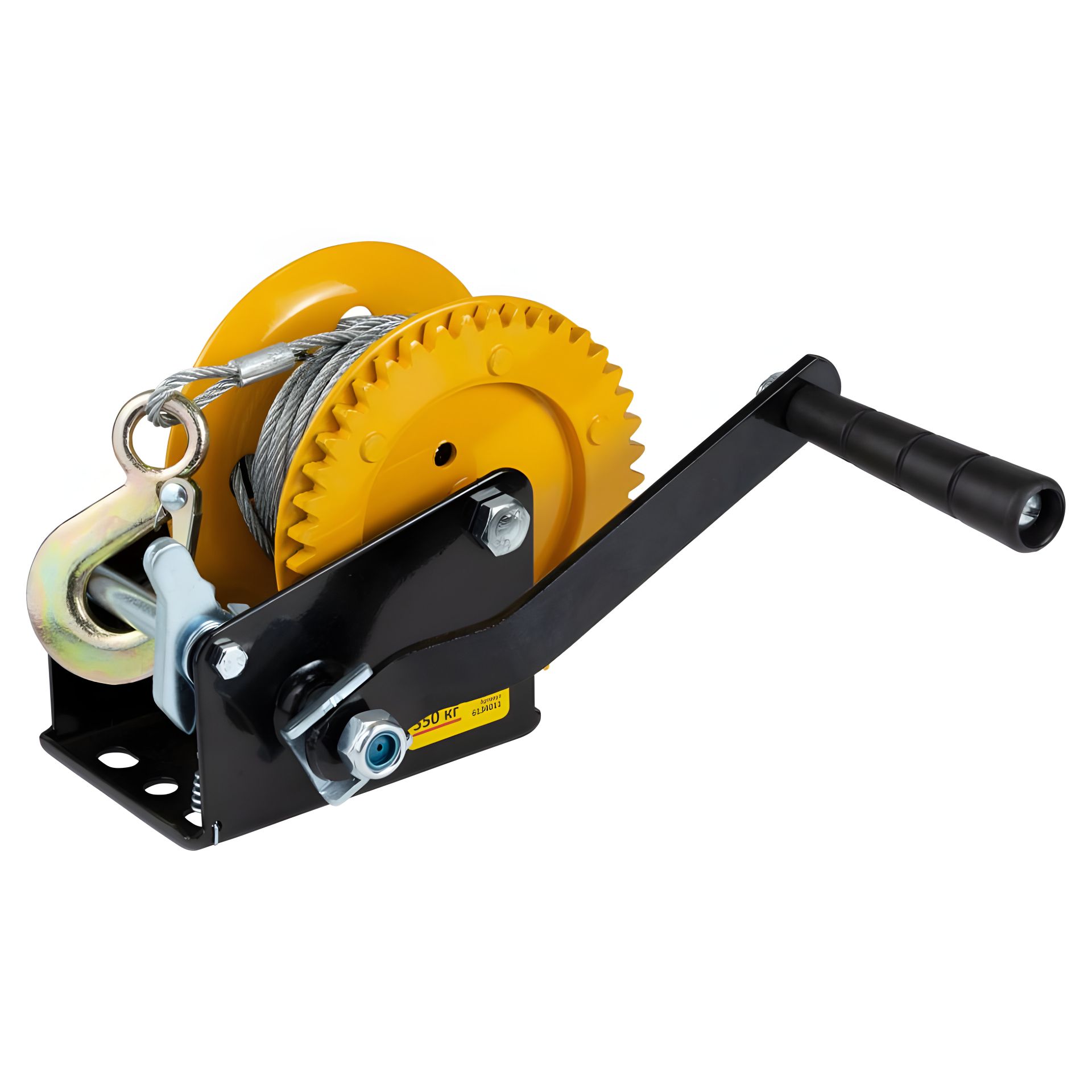 Стальной трос для перемещения груза крепится к ушку барабана. Модель оборудована одноступенчатым редуктором и используется для силового перемещения грузов.