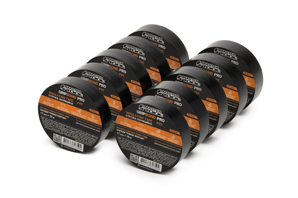 Лента изоляционная PVC 17 мм×10 м 10 шт черная MASTERTOOL (Код 44-9110)