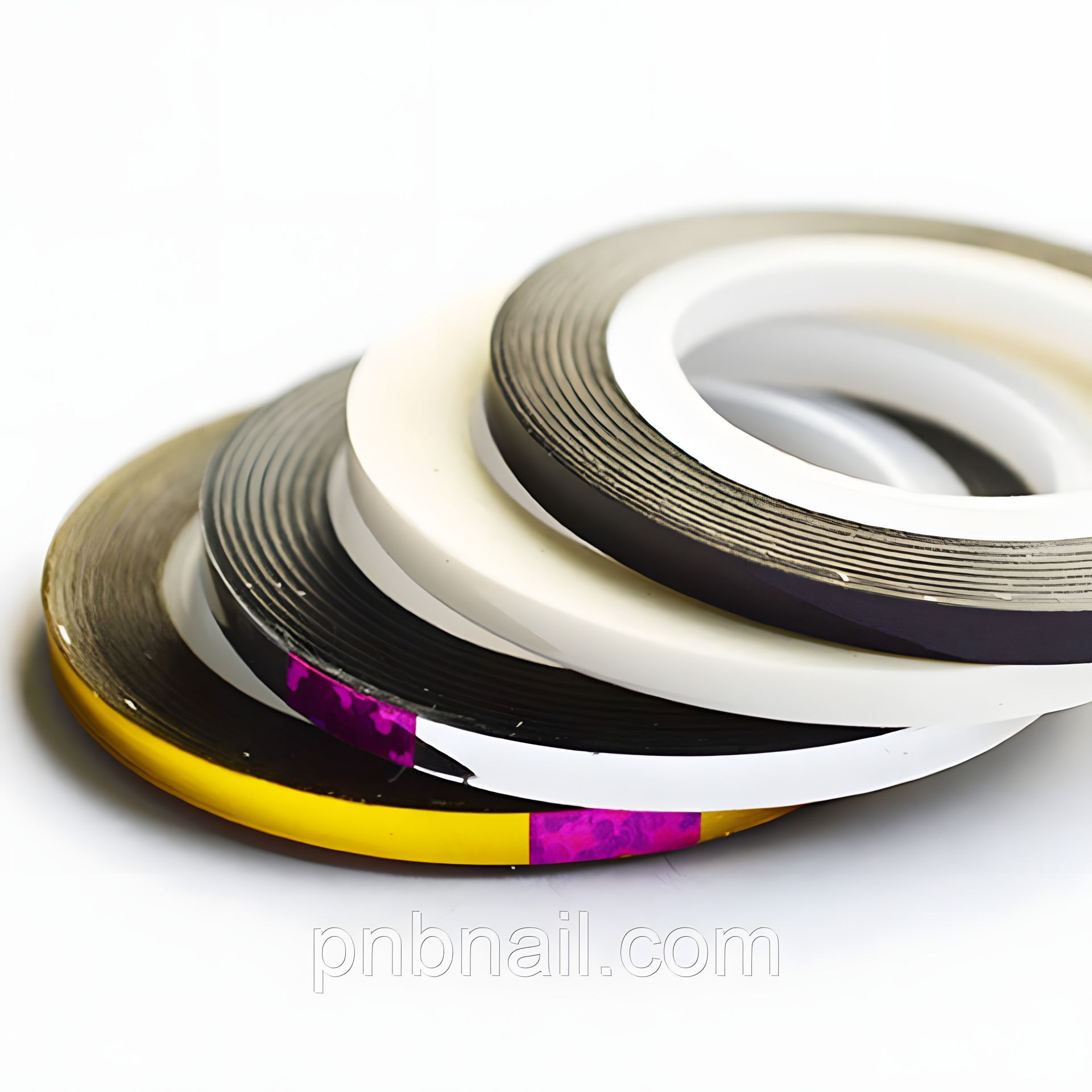 Лента для дизайна – это тоненькая самоклеящаяся полоска, выполненная в разных цветах, в блестящем металлике. Лента имеет клейкий слой, поэтому использовать ее можно на любом покрытии, будь-то лак, гель-лак или акрил. Клеить её нужно на высохшие ногти, она не отклеиться. Зато это предотвратит появление углублений в лаке от прижимания ленты к ногтю. Приклеивая ленту, следует чуть отступать от краев кутикулы и контуров ногтевой пластины, в том числе и свободного края, иначе ею легко зацепиться и отклеить. После того, как лента приклеена, поверх необходимо нанести закрепитель. Это сгладит поверхность, а блеск не пострадает.