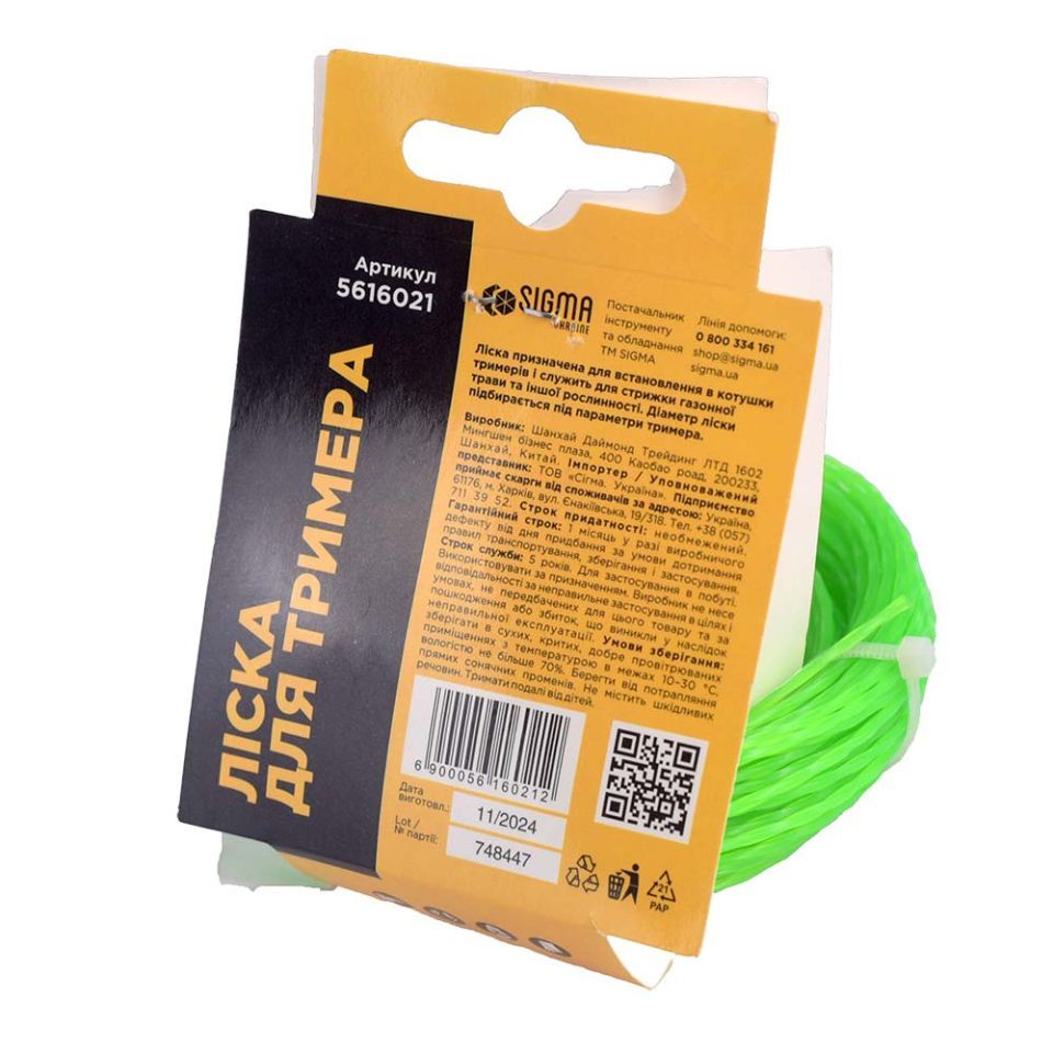 Леска для триммера крученый квадрат Ø1.6мм 15м SIGMA 5616021