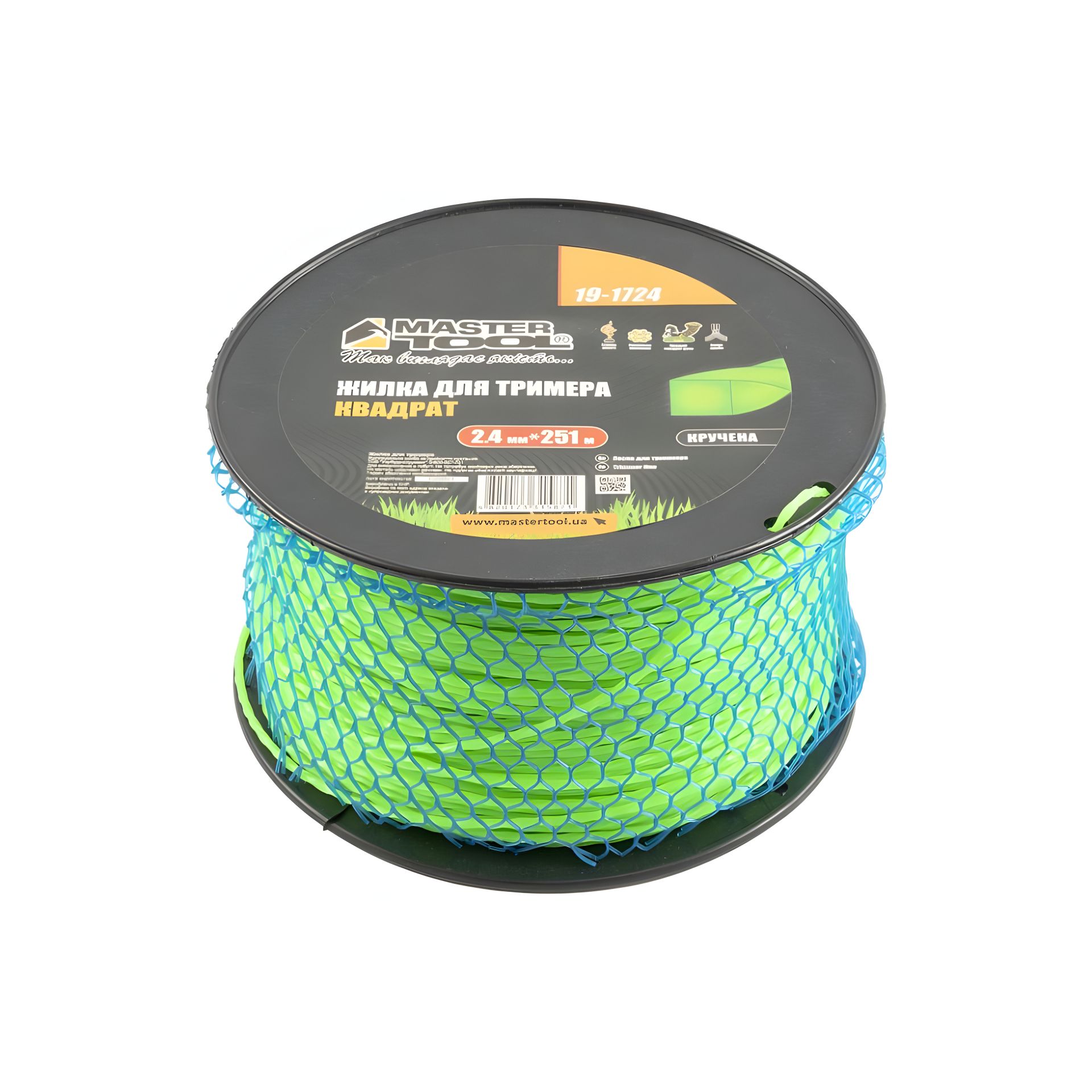 Леска для триммера КВАДРАТ КРУЧЕННЫЙ 2,40 мм 251 м катушка MASTERTOOL 19-1724