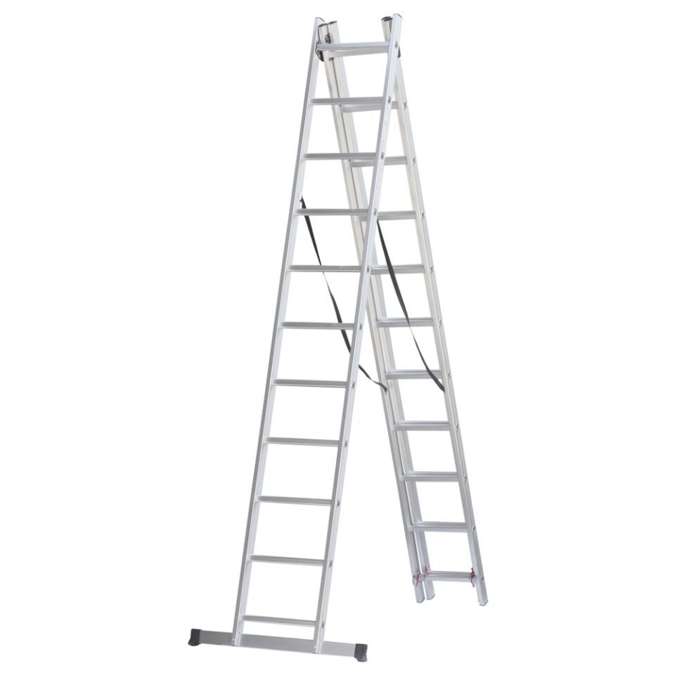 Лестница раскладывающаяся универсальная 3×11 ступеней 7.33м SIGMA (5032364) предназначена для внутренних и наружных строительных и ремонтных работ, уборки урожая в саду.