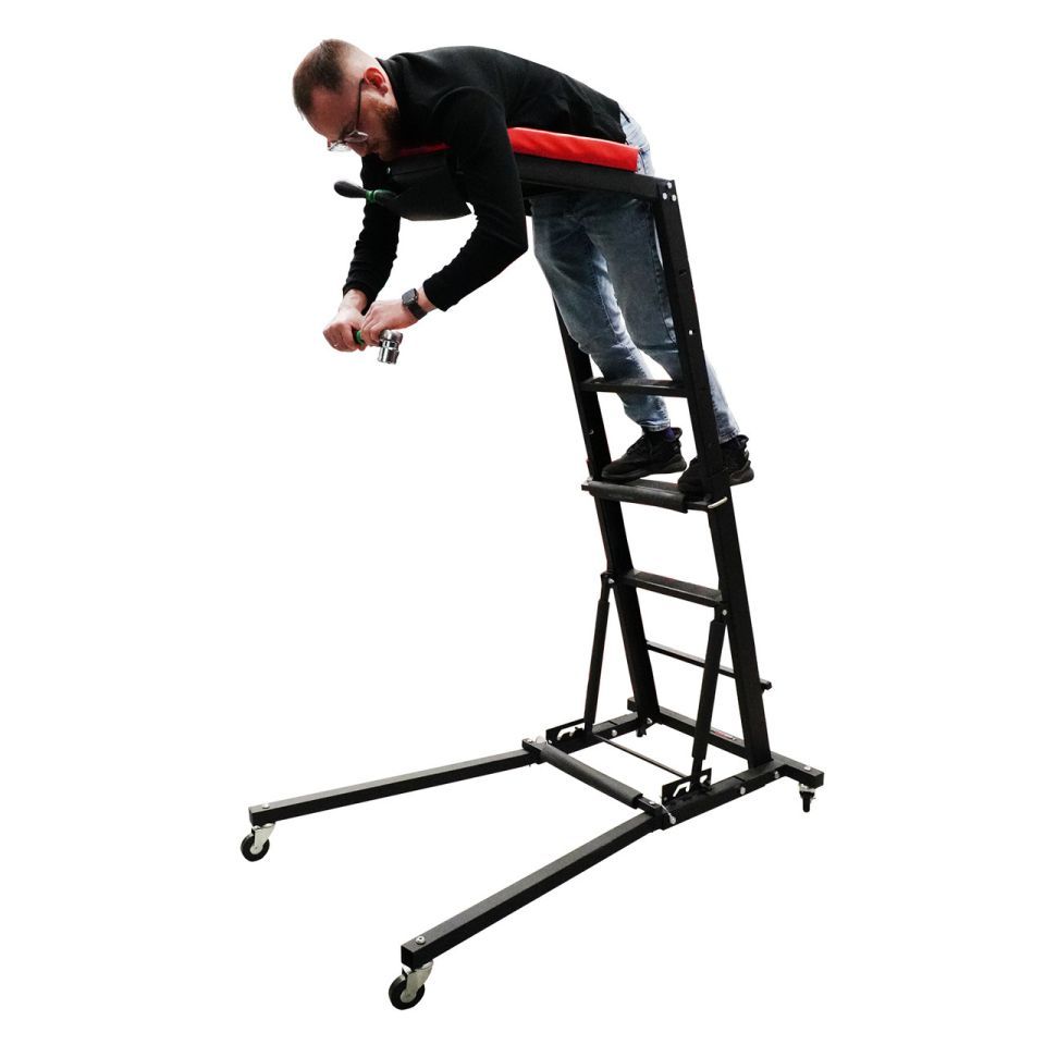Лежек автослесаря регулируемый подъемный TORIN PR4709-X предназначен для обеспечения удобного доступа к верхним частям двигателя и другим труднодоступным местам автомобиля.