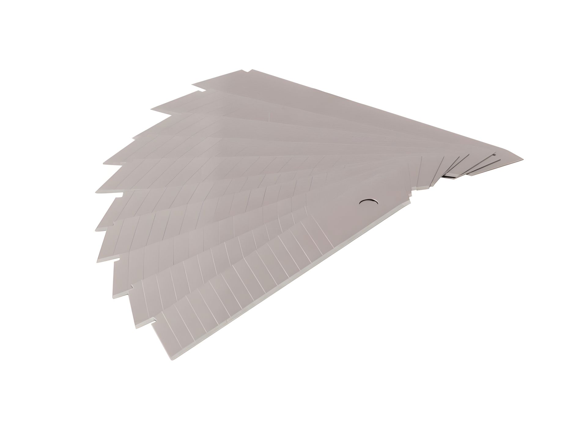 Благодаря 14 сегментам пользователь может легко отломать использованную часть, получая новую острую режущую кромку. Лезвия подходят для работ с бумагой, картоном, кожей, пленкой, линолеумом и другими материалами.