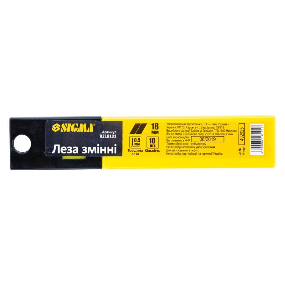 Сменные лезвия (прямые) 18мм, 10шт SIGMA 8218101
