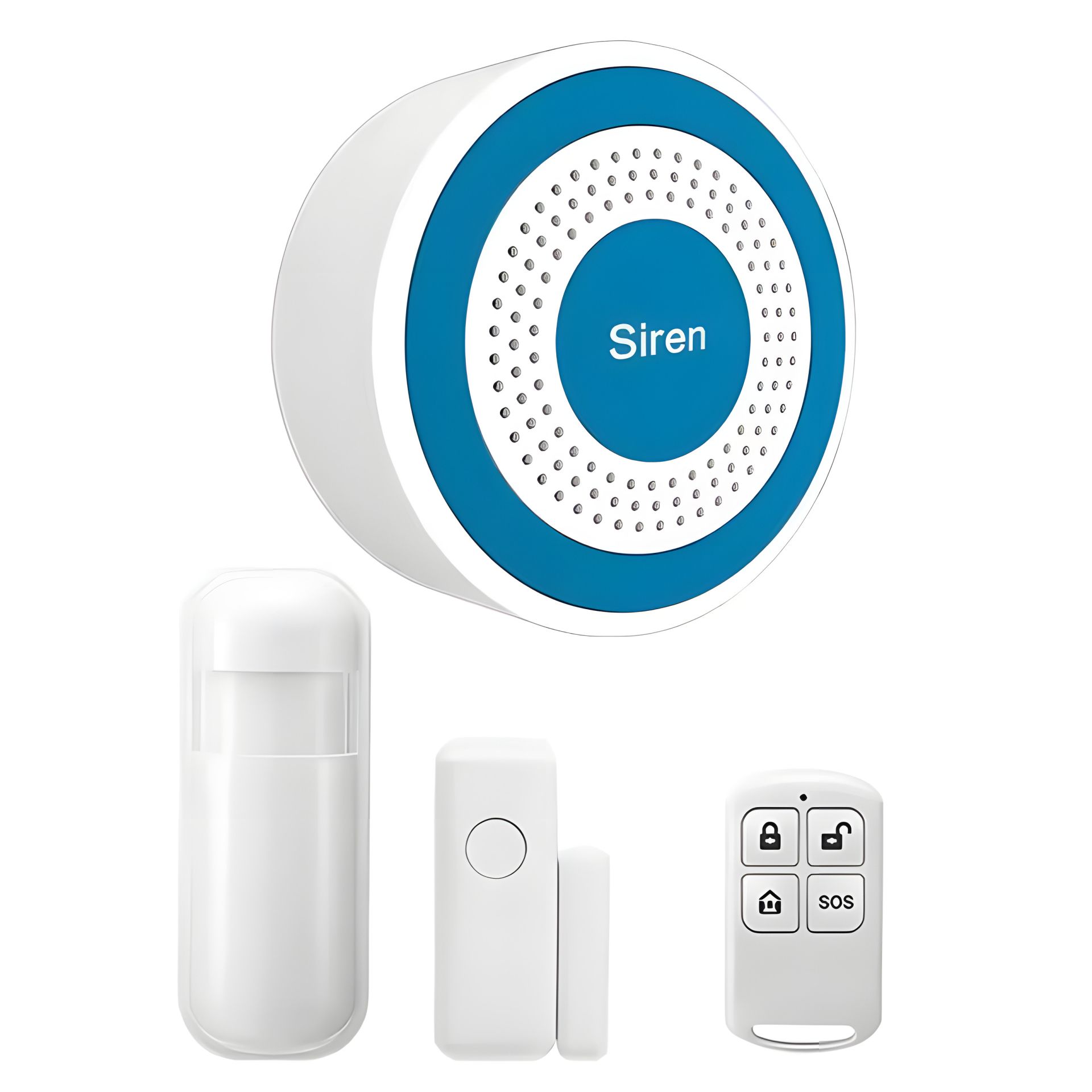 Локальная беспроводная система сигнализации с сиреной, 1 датчиком движения, 1 датчиком открытия и 1м пультом управления.