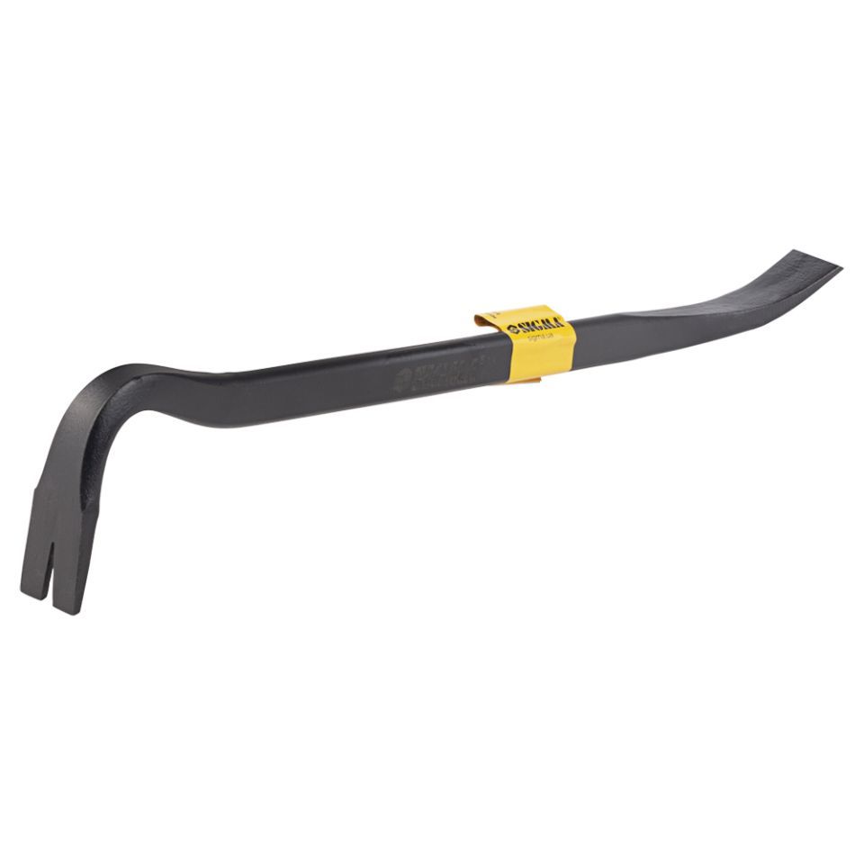 Лом-гвоздодер усиленный 400×21×11мм SIGMA (4324121) применяется для удаления гвоздей, строительных скоб, демонтажа строительных материалов, оконных и дверных проемов, скола асфальта, льда и других видов работ.