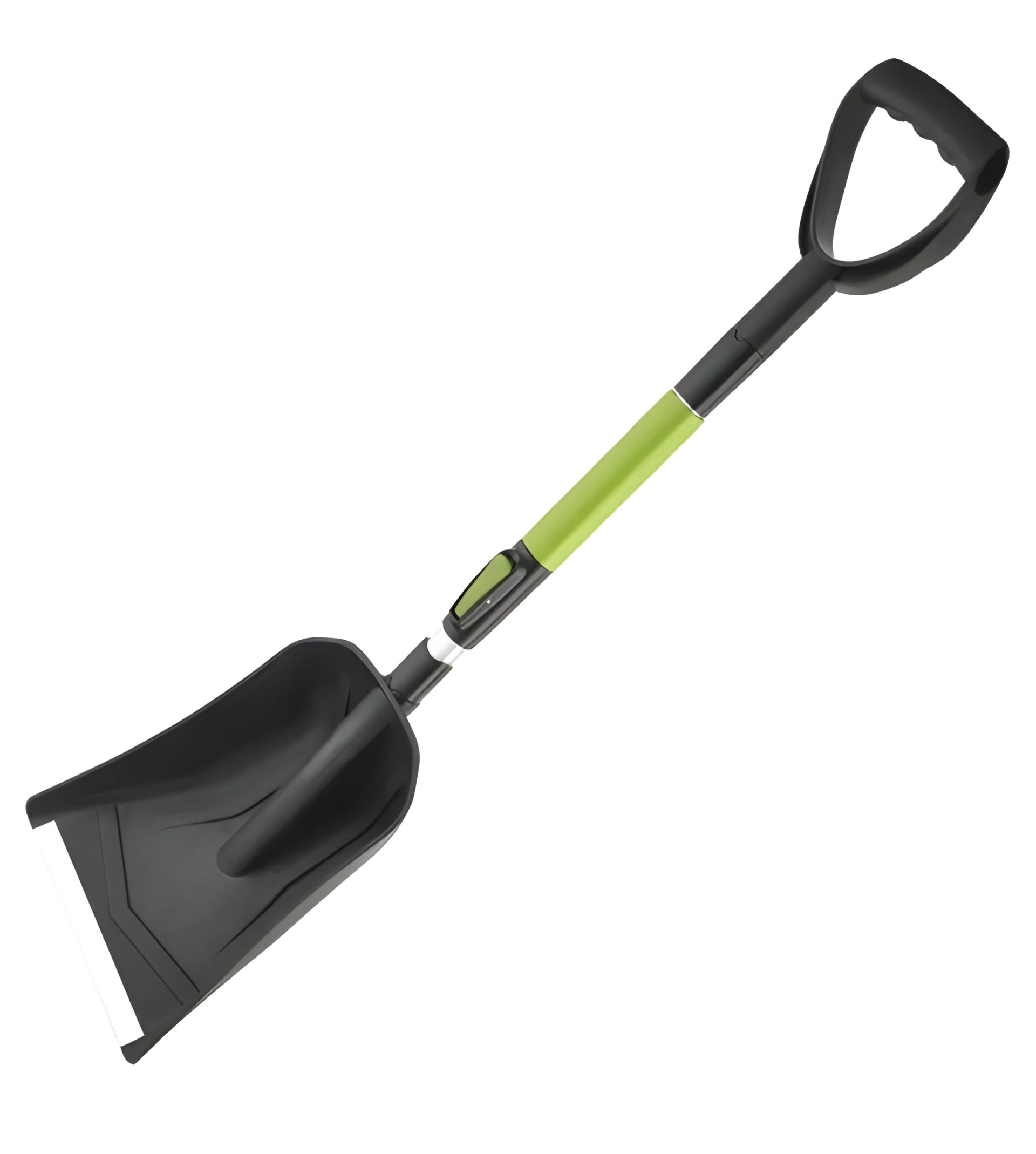 Лопата имеет уникальный дизайн с телескопической ручкой, позволяющей легко регулировать длину от 58 см до 73 см, обеспечивая оптимальное удлинение в зависимости от роста и предпочтений. Это позволяет снизить нагрузку на спину и руки, сделав процесс снегоуборки более эргономичным и удобным.