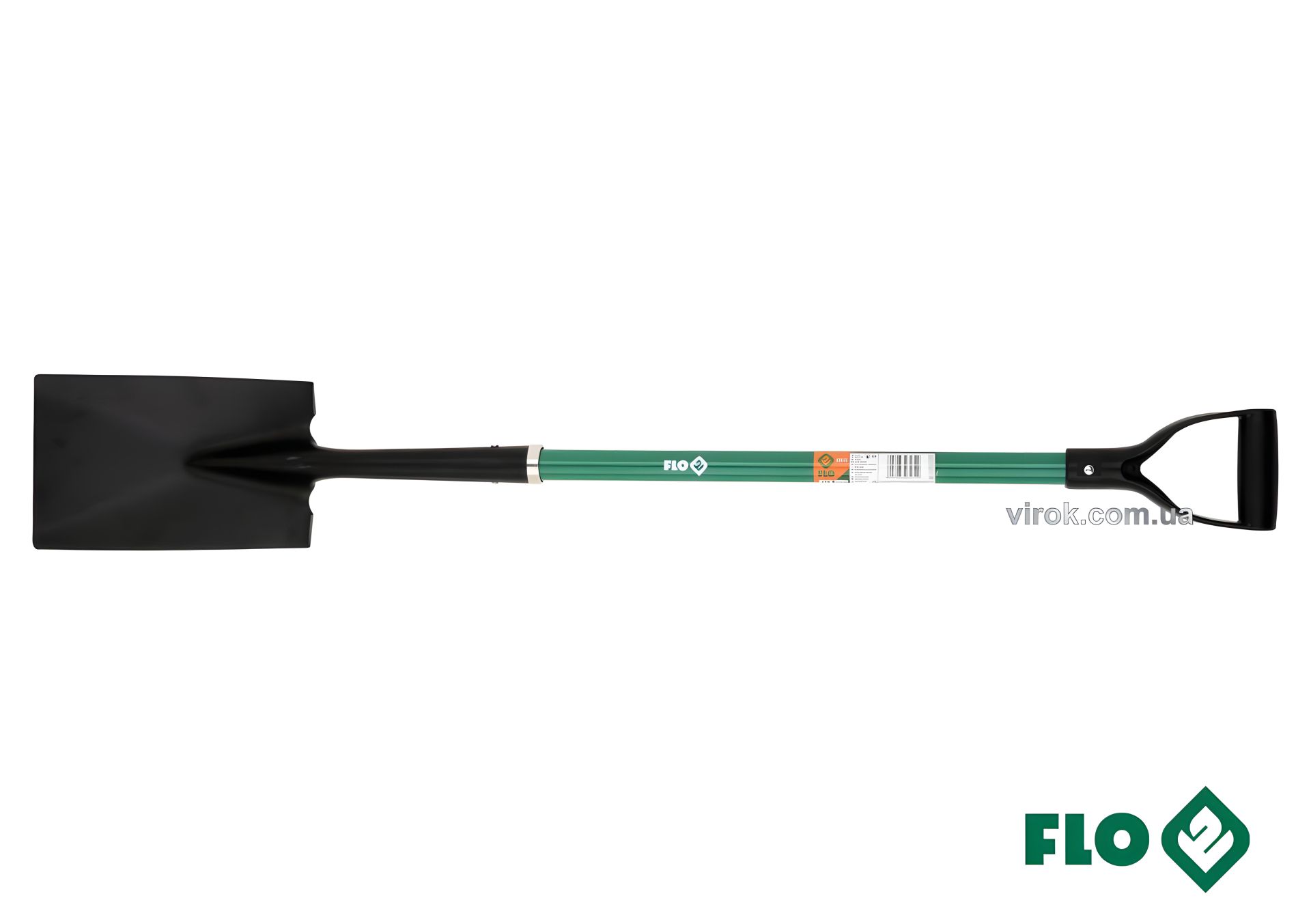 Штыковая прямая лопата FLO 17.5 x 27 x 120 см стальная основа стекловолоконная ручка Vorel 35836
