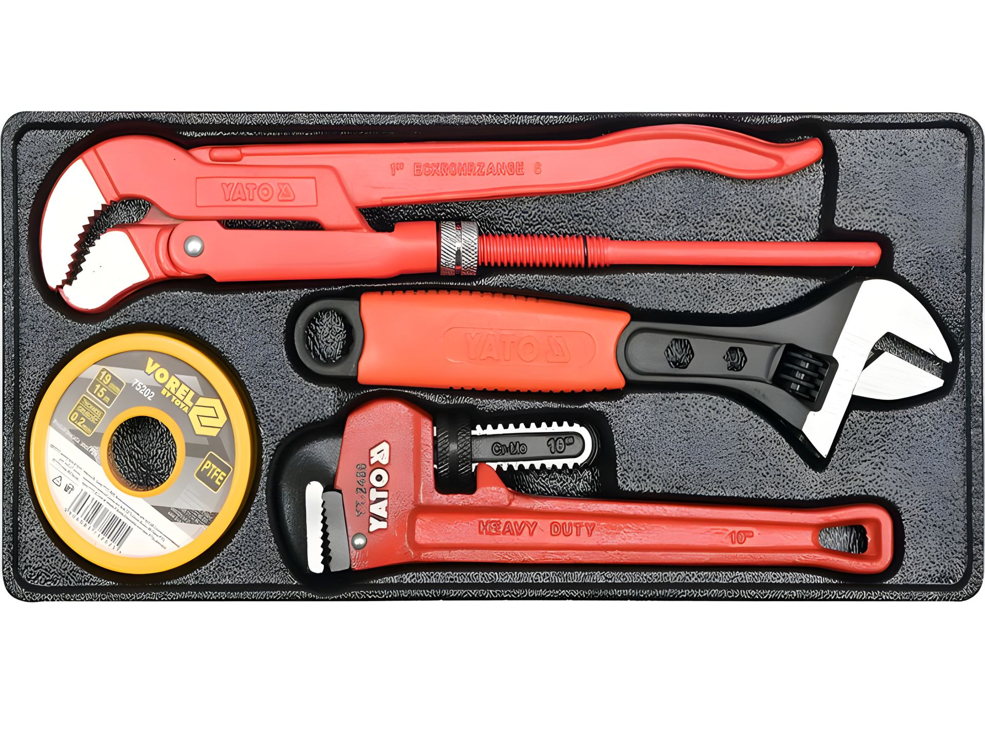 Вклад до инструментального шкафа YATO 2 трубные и 1 разводной ключи, тефлоновая лента, 4 элемента