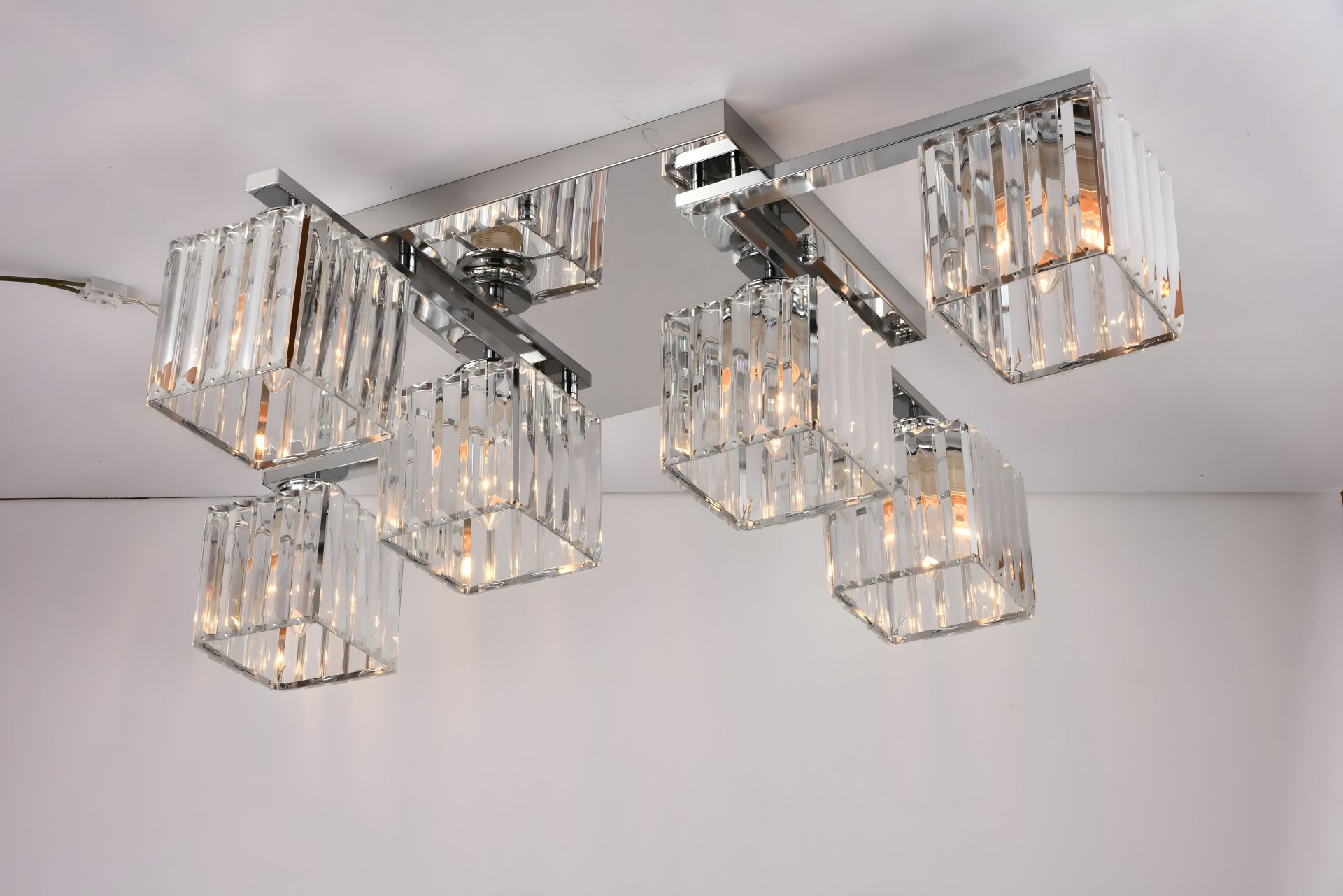 Эта хрустальная люстра совмещает современный стиль с классической элегантностью. Изготовленная из хромированного металла, она отлично подойдет для гостиной, спальни или любой комнаты, где вы хотите добавить нотку изящества и блеска. Прозрачные стеклянные плафоны подчеркивают грацию хрустальных элементов, создавая уникальную игру света.
