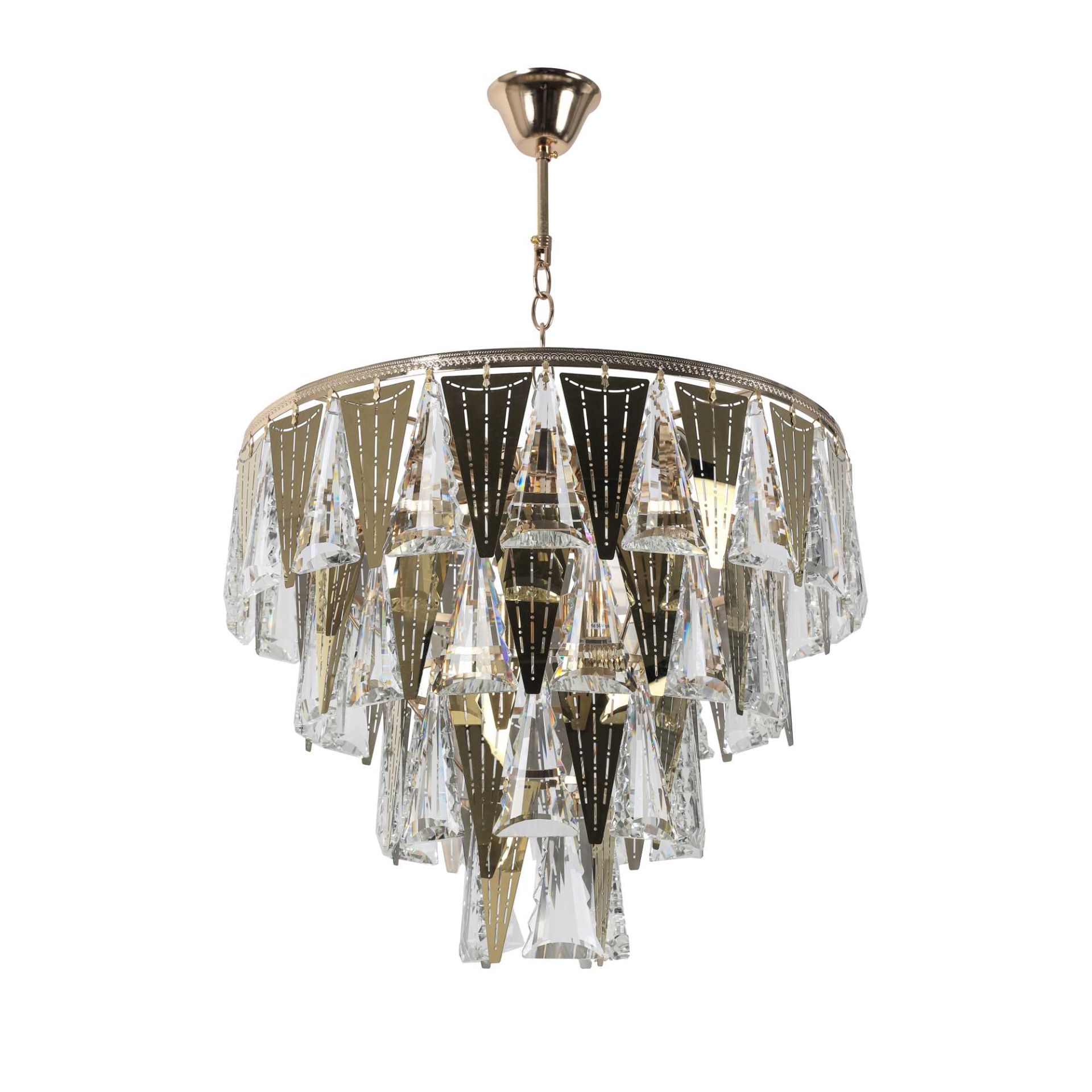 Стеклянный подвес с элементами стекла и металла треугольных размеров придает этой люстре нотку современности и оригинальности. Этот дизайн создает интересный графический вид и придает глубину освещению.