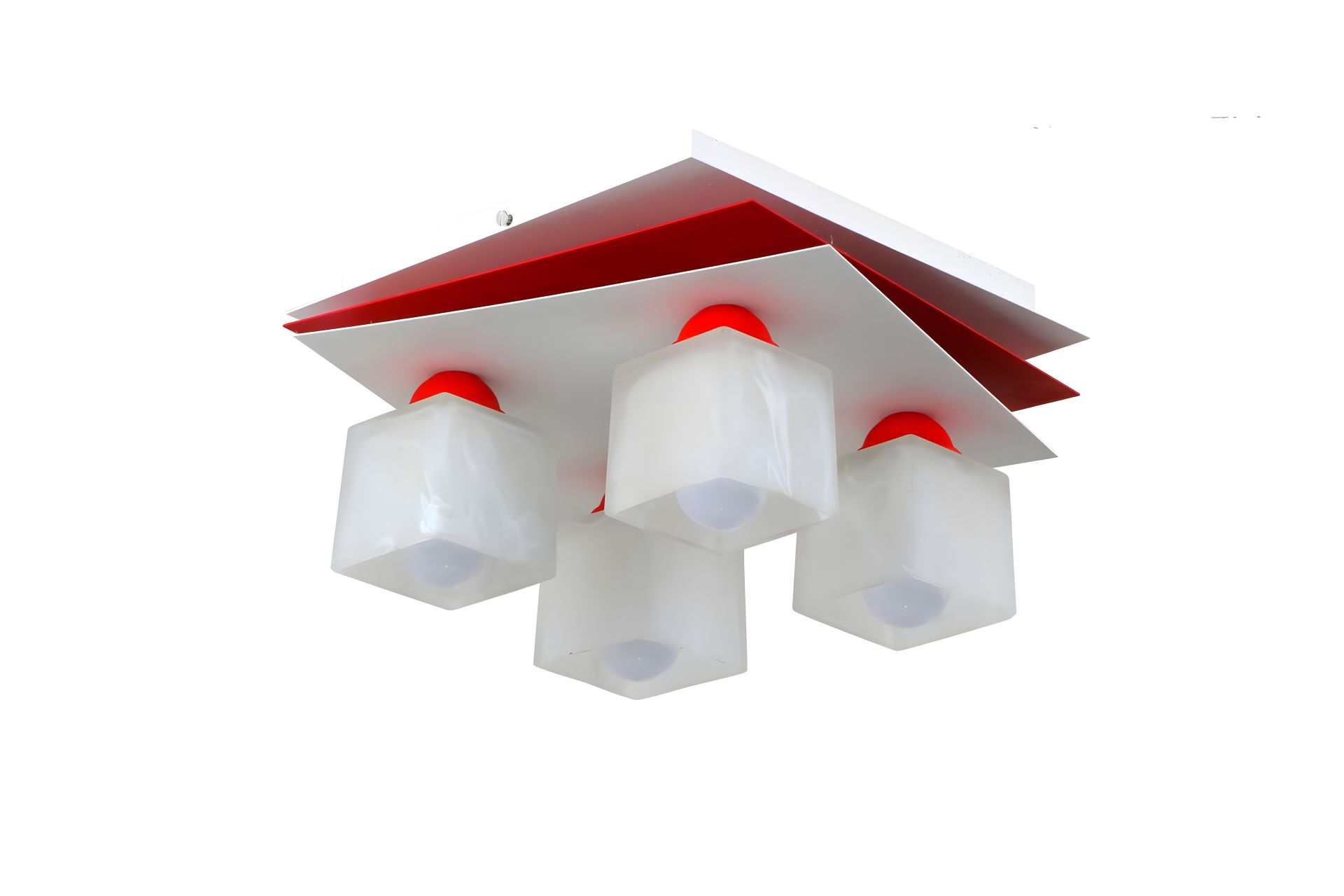 Четыре плафона из стекла в белом оттенке квадратной формы рассеивают свет равномерно по всей комнате, создавая атмосферу уюта и комфорта. С цоколем Е27, вы можете использовать лампочки до 60 Ватт, включая энергосберегающие LED или накаливание.