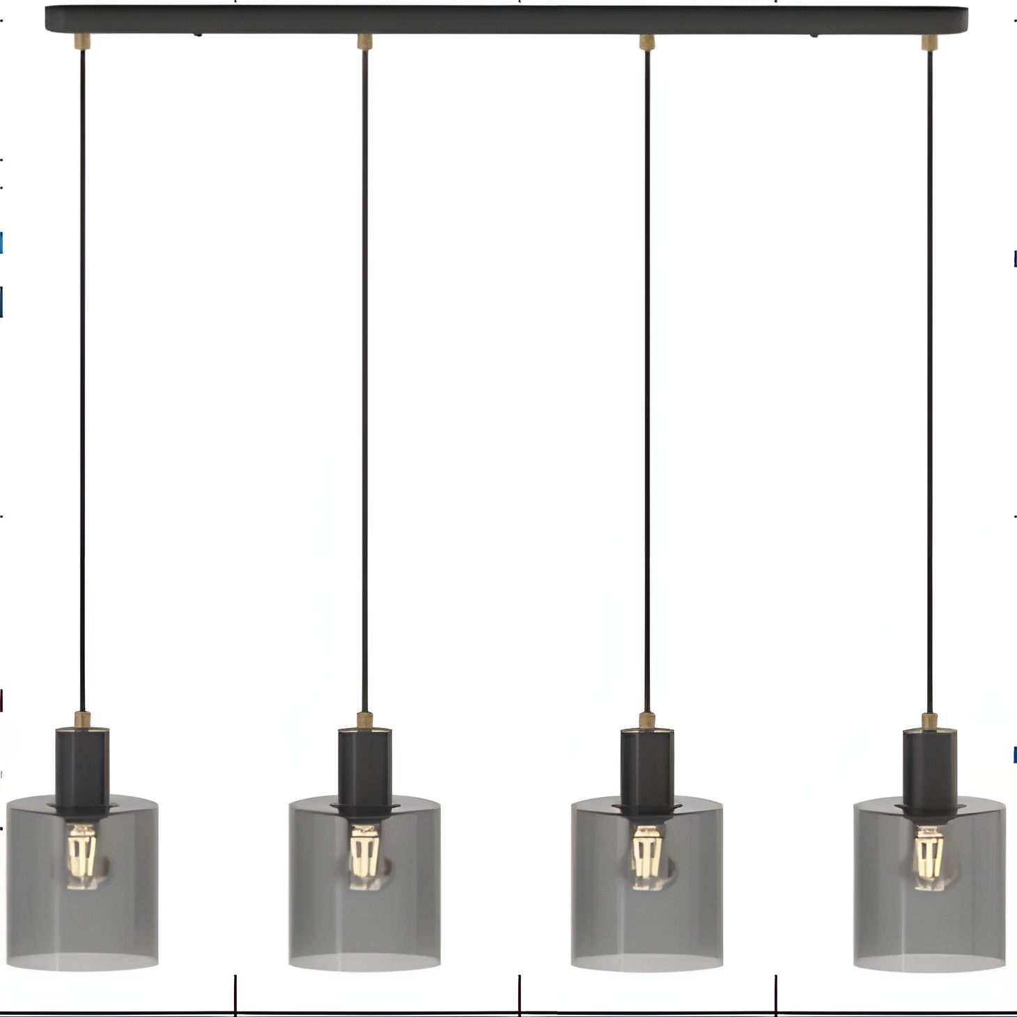 С размерами длины 700 мм и шириной 60 мм, а также регулируемой высотой от 150 мм до 1500 мм вы сможете легко настроить освещение под ваши потребности и интерьер. Каркас из металла черного цвета гармонично сочетается с четырьмя плафонами из стекла цилиндрической формы в сером оттенке, создавая неповторимый атмосферный эффект.