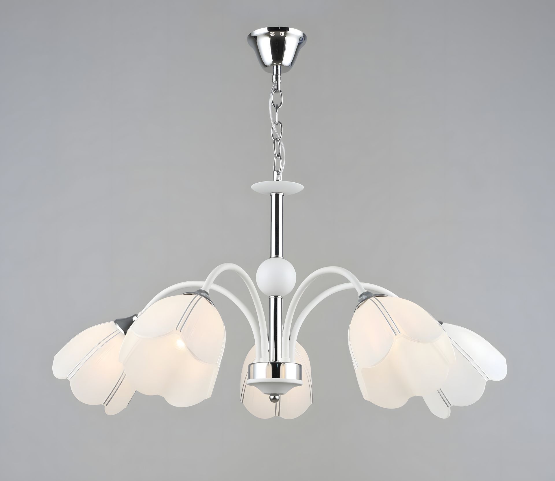 Люстра сочетает изысканность белого цвета с современной хромированной отделкой, создавая стильный акцент в вашем интерьере. Она гармонично дополнит любое современное пространство, придавая ему легкость и изящество.