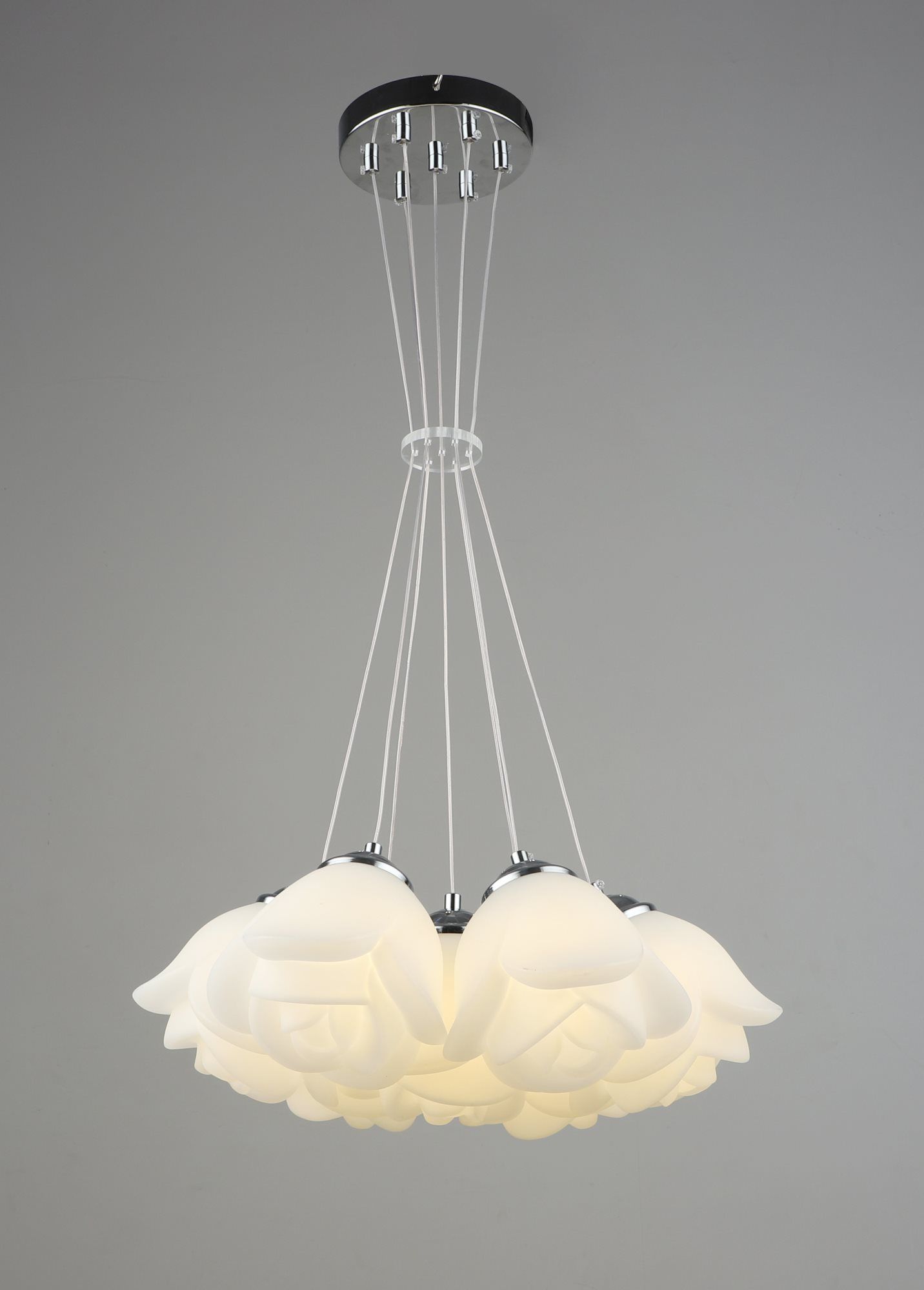 С диаметром 490 мм и высотой 800 мм, Sirius B YH1010/7 CH+WT 35W ненавязчиво вписывается в любой интерьер. Каркас из металла в хромовом цвете и семь акриловых белых плафонов в форме цветка создают изысканный образ.