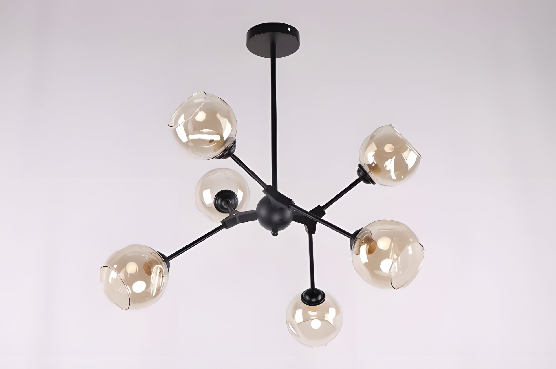 Люстра оснащена шестью прозрачными плафонами, направленными в разные стороны. Это создает интересный и эффектный эффект освещения в помещении, рассеивая свет по разным направлениям. Прозрачность плафонов придает легкость и прозрачность, позволяя свету распространяться без помех и создавать интересную игру света и тени.