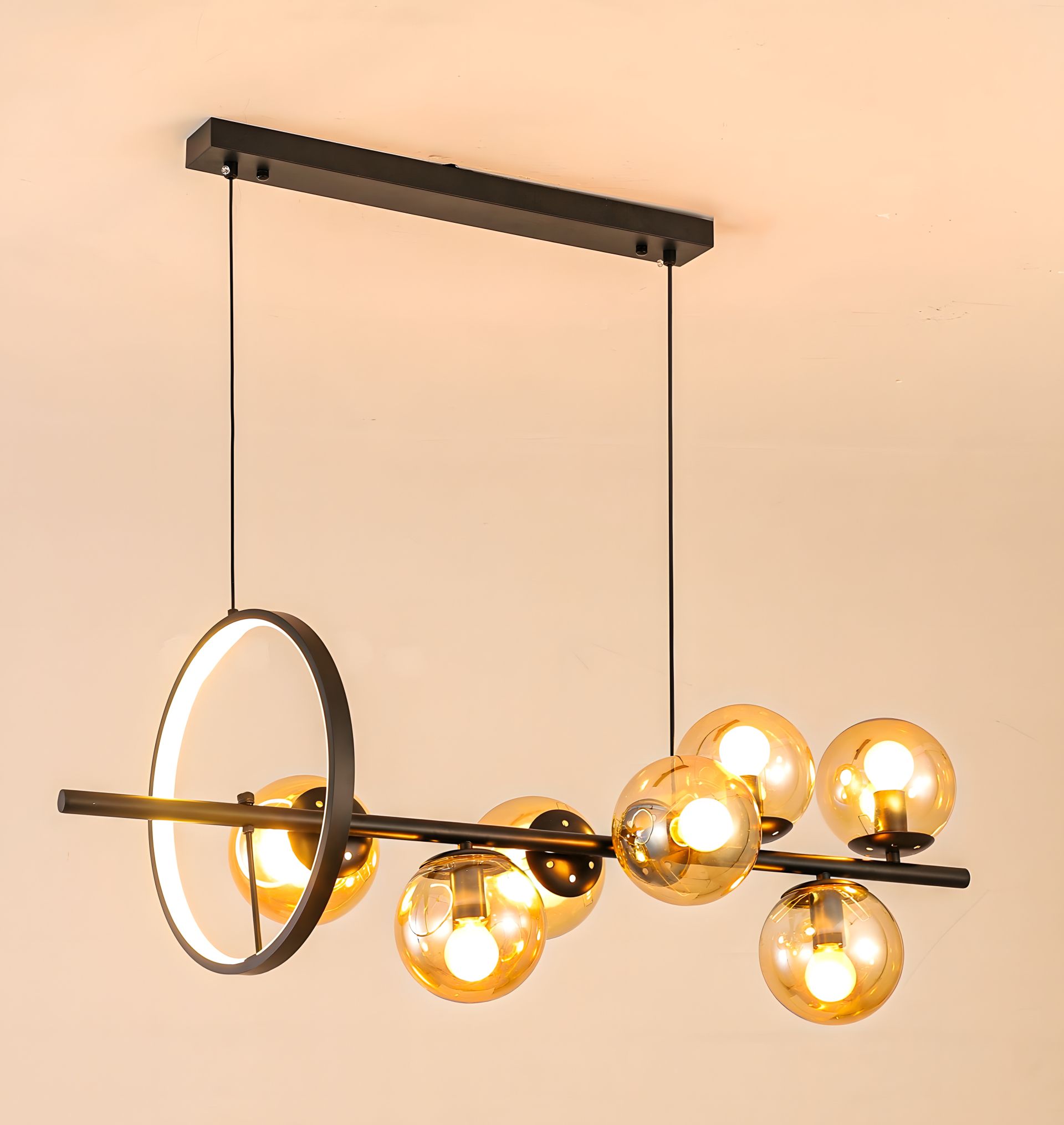 Люстра изготовлена из металла черного цвета, что придает ей элегантность и стиль. Благодаря своим изящным формам и качественным материалам она станет идеальным акцентом в любом современном интерьере.