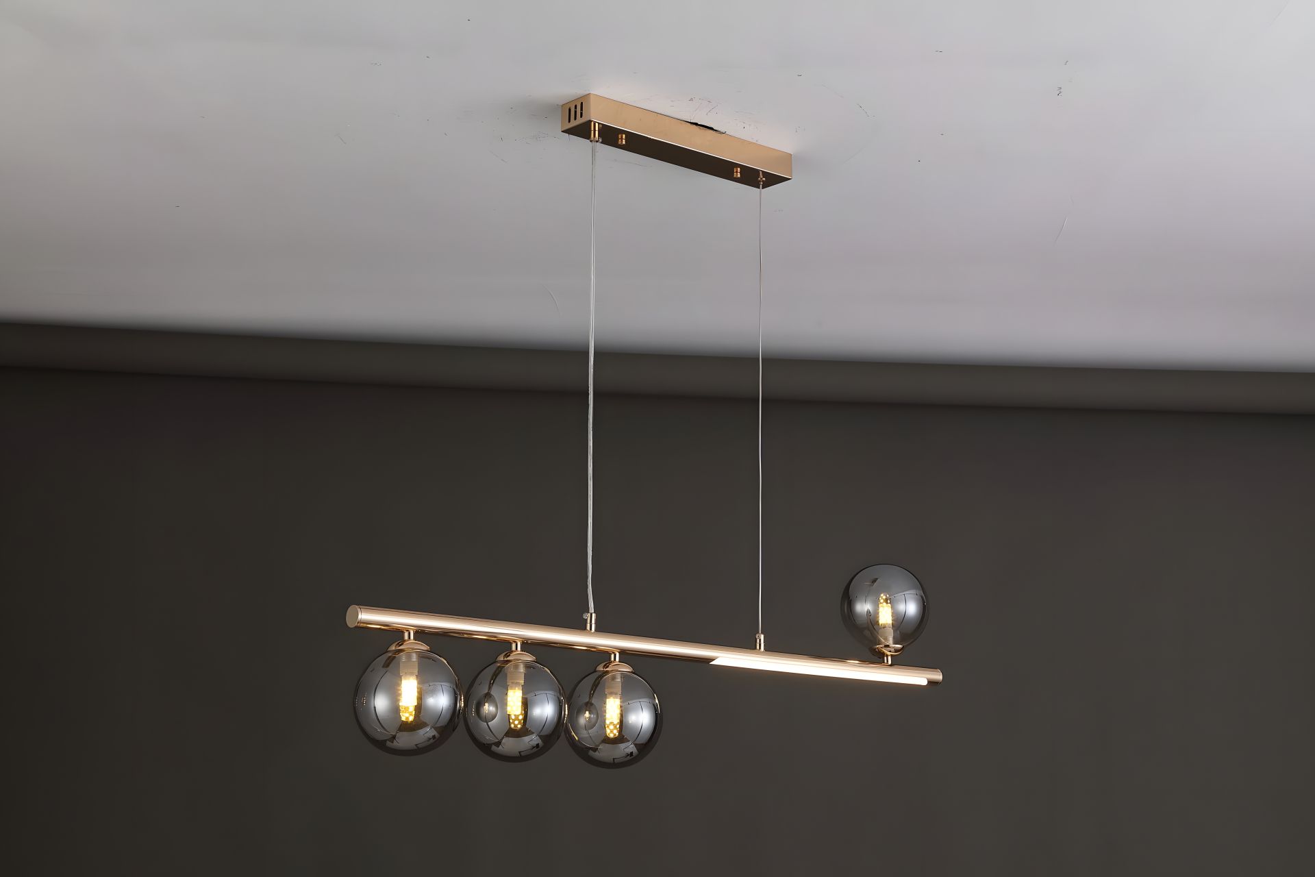 Люстра подвесная VALESO GLD-23941/4 благодаря сочетанию изысканного золотого цвета, прозрачных стеклянных плафонов и встроенной светодиодной ленты модель гармонично дополнит интерьер и станет его ключевым элементом.