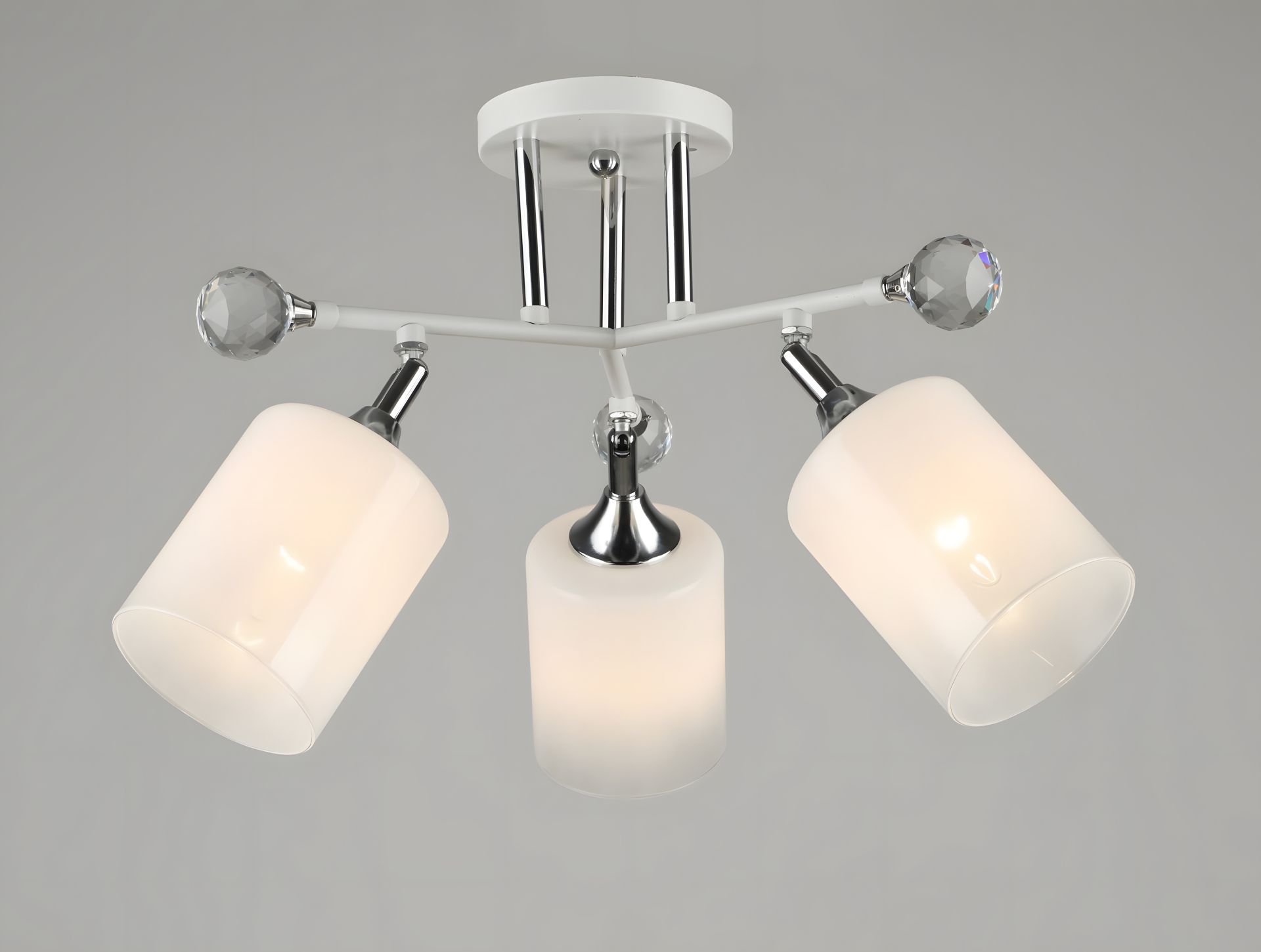 Каркас из металла хромового цвета придает конструкции современную элегантность и стильность. Благодаря своему декоративному стилю, эта люстра отлично вписывается в разные интерьерные решения, придавая помещению изысканность.