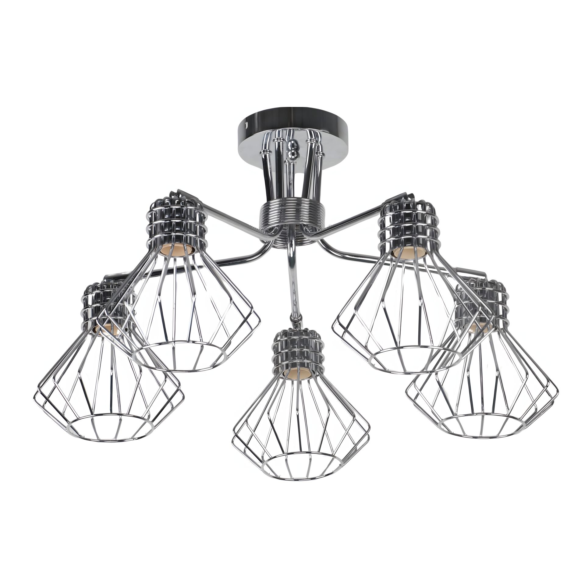 Люстра оснащена пятью плафонами с цоколем E27, которые подходят для использования лампочек до 60 Ватт, будь то энергосберегающие или лампочки накаливания. Это позволяет настроить яркость освещения в соответствии с вашим желанием и потребностями.