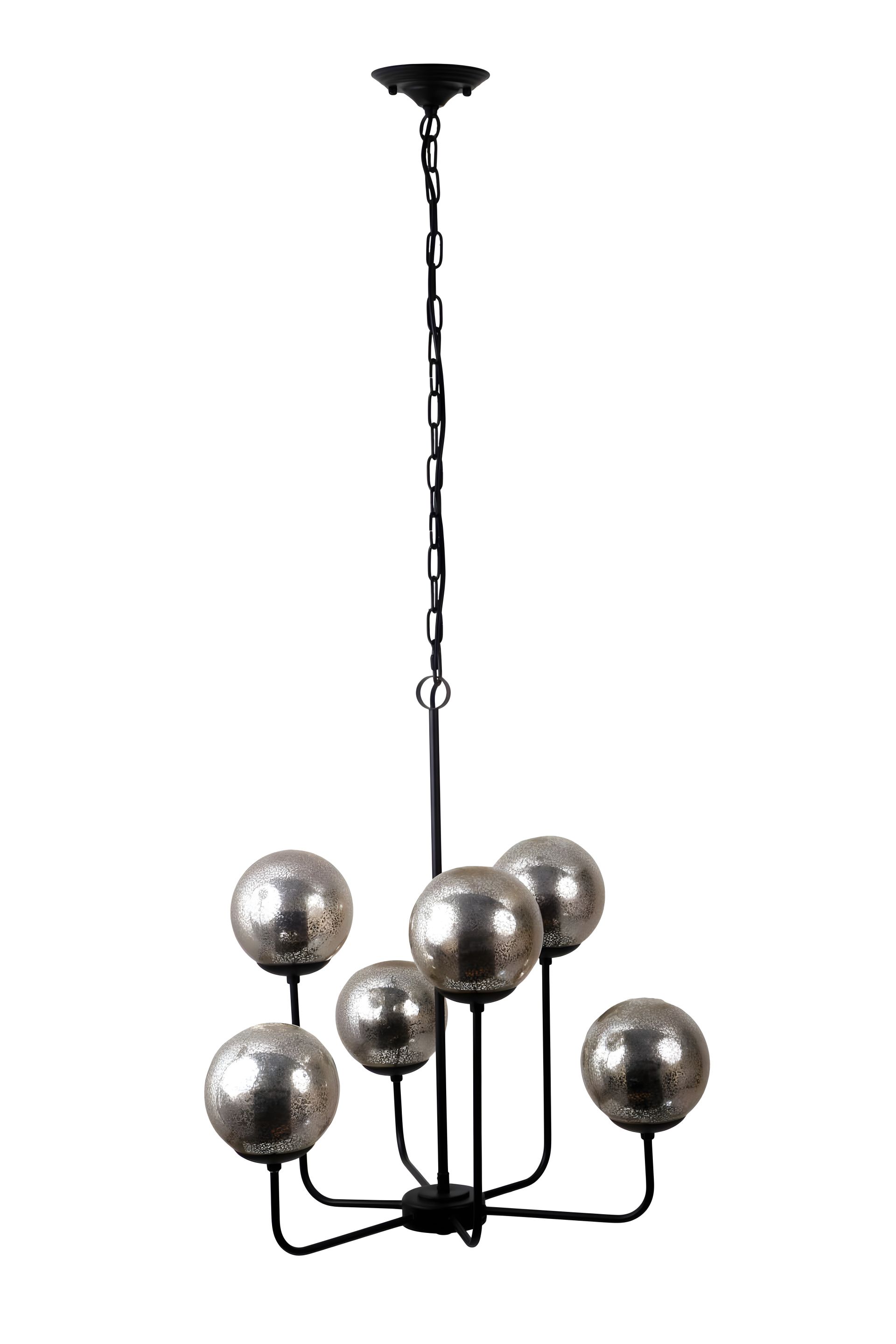 Люстра Sirius YG16616-6P станет идеальным центром внимания в вашей гостиной, столовой или холле. Ее каркас изготовлен из прочного металла черного цвета, что придает конструкции индустриального шарма и надежности. Шесть плафонов из стекла круглой формы цоколя Е-27 обеспечивают равномерное и приятное освещение, создавая комфортную атмосферу в вашем помещении. Люстра рассчитана на 6 лампочек, что позволяет наполнить ваше пространство ярким и теплым светом. Она идеально подходит для больших комнат и открытых просторов, придавая им современный характер и стильный вид.