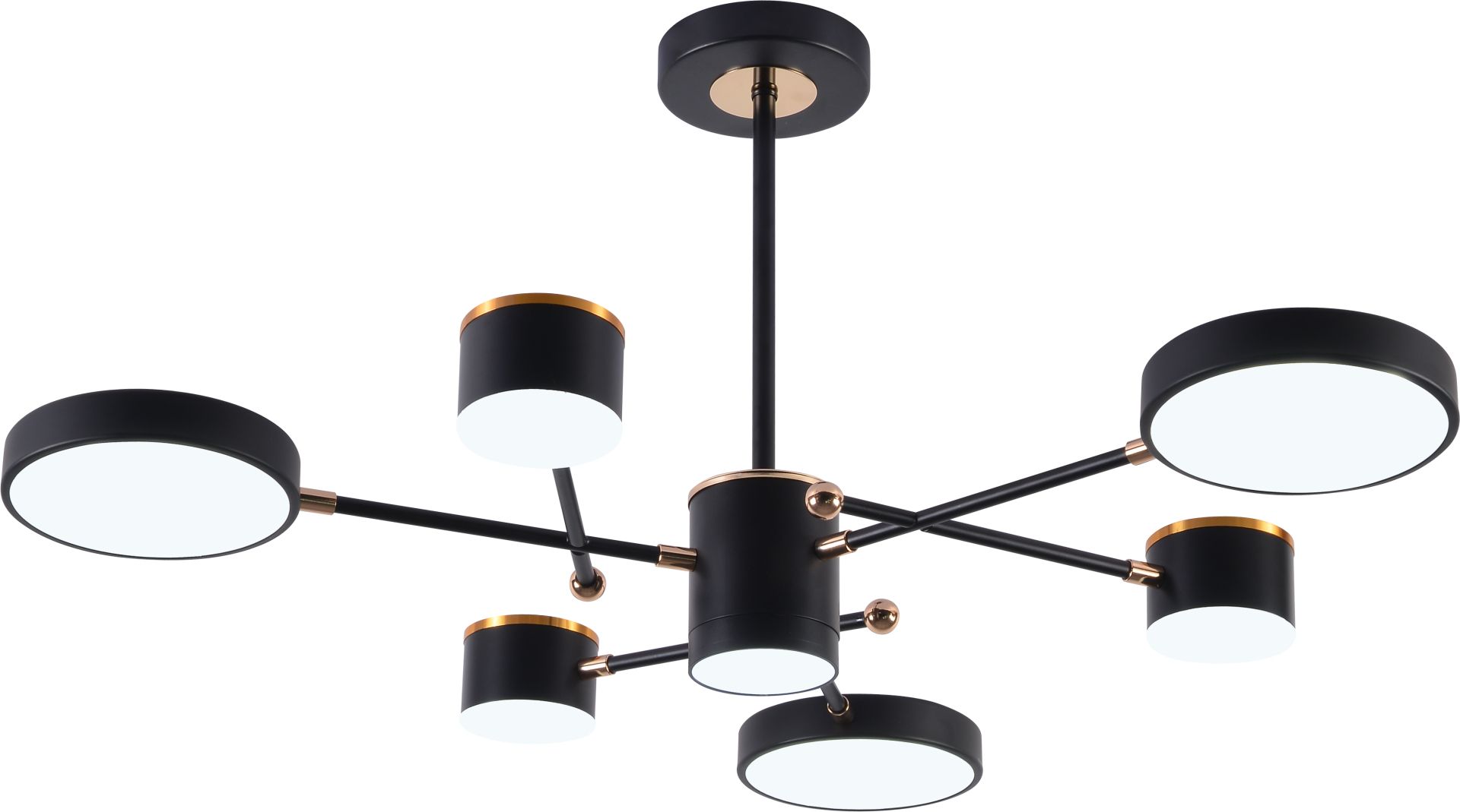 Шесть плафонов из акрила черного и позолоченного цвета круглой формы обеспечат равномерное и приятное освещение во всем помещении. Общая мощность 114 Ватт обеспечит достаточную яркость даже в самых больших помещениях.