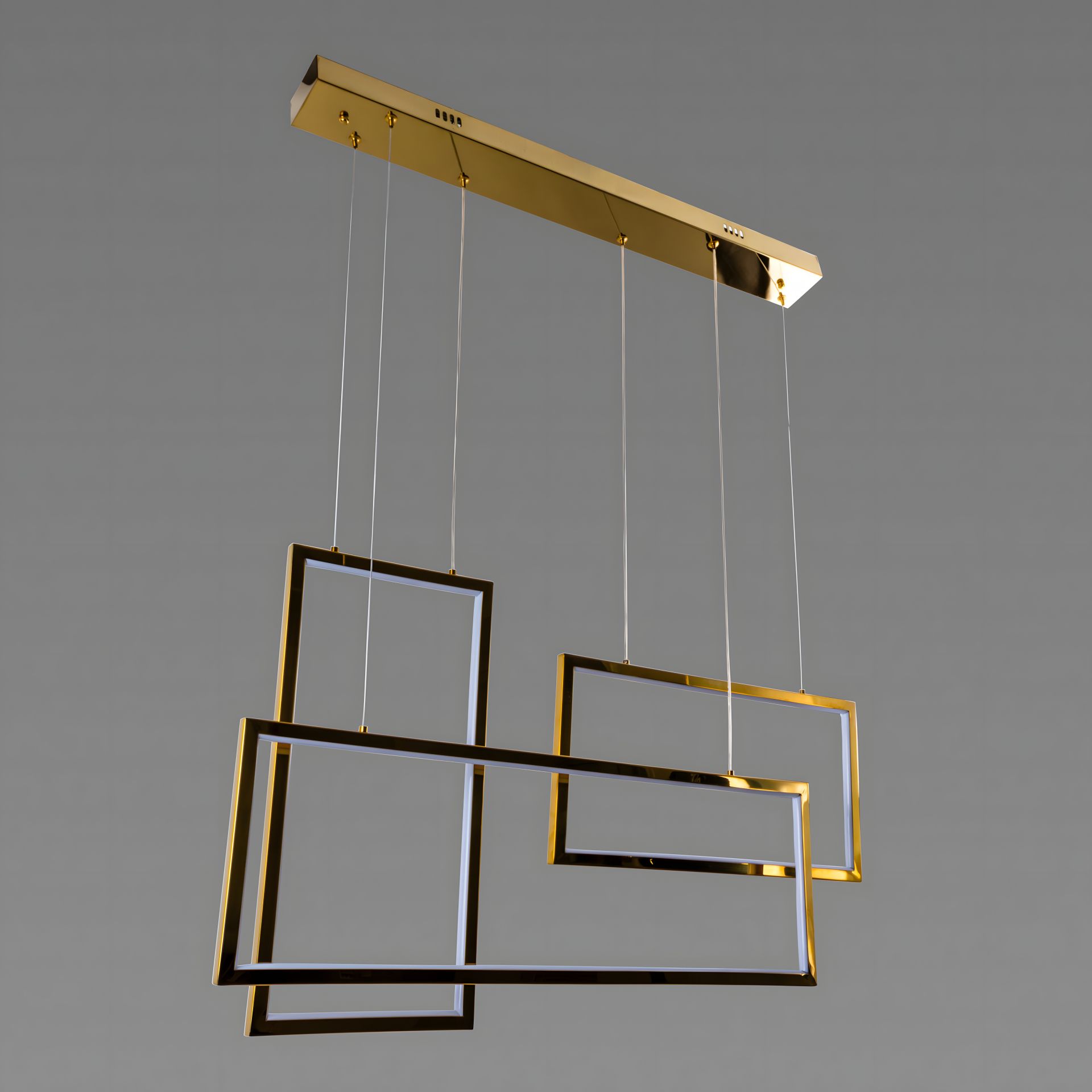 - Плафоны: Люстра имеет 3 плафона квадратной формы золотого цвета, что придает роскоши и элегантности. Плафоны из акрила обеспечивают равномерное распределение света и приятную атмосферу.