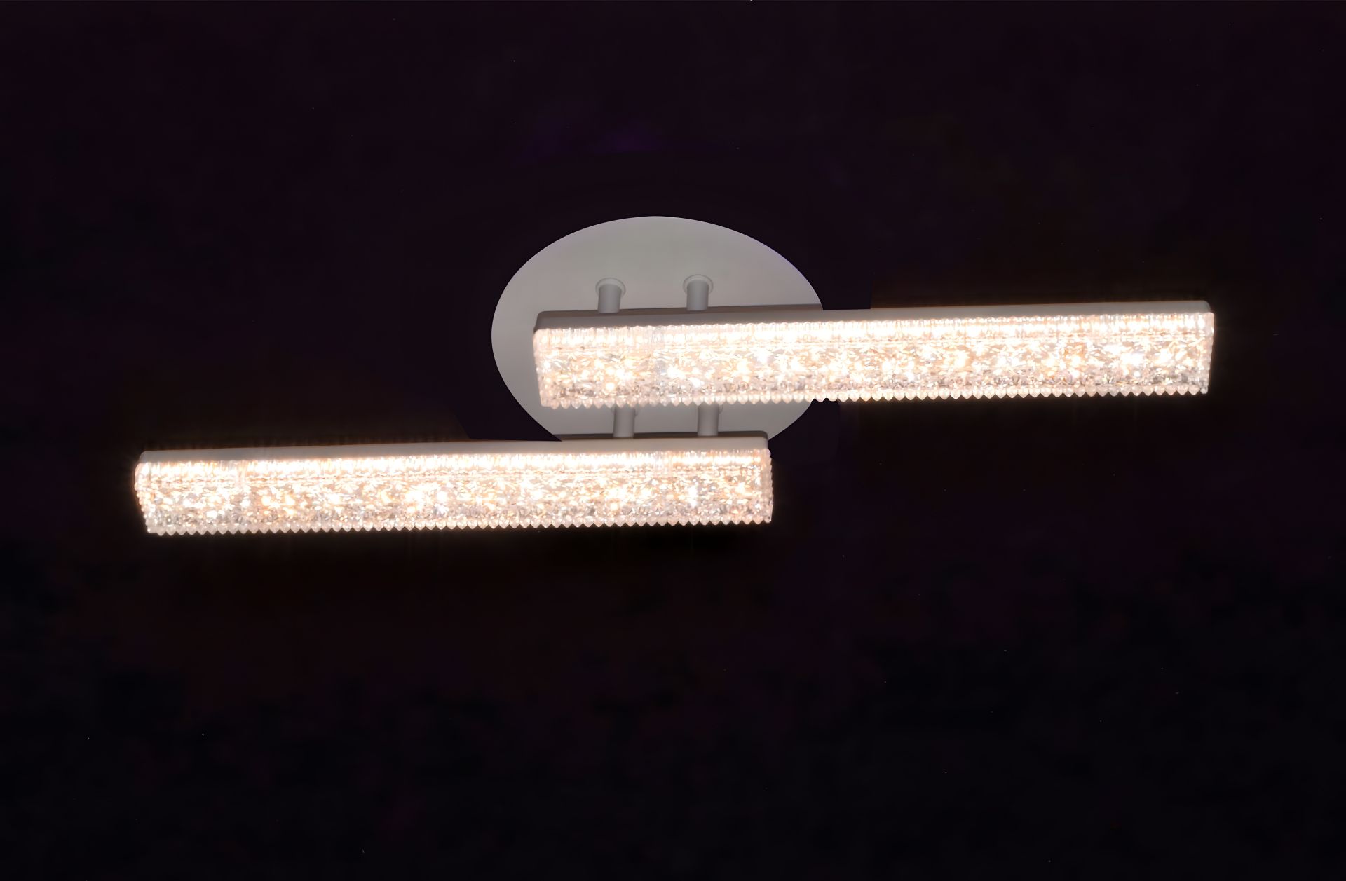 Эта люстра изготовлена из высококачественного акрила и имеет два элегантных прямоугольных плафона белого цвета. Ее дизайн выразительно демонстрирует современность и элегантность. И что самое важное, она предназначена для комнат, где каждый сантиметр имеет значение, размеры люстры – 495 мм длина, 160 мм ширина и 90 мм высота
