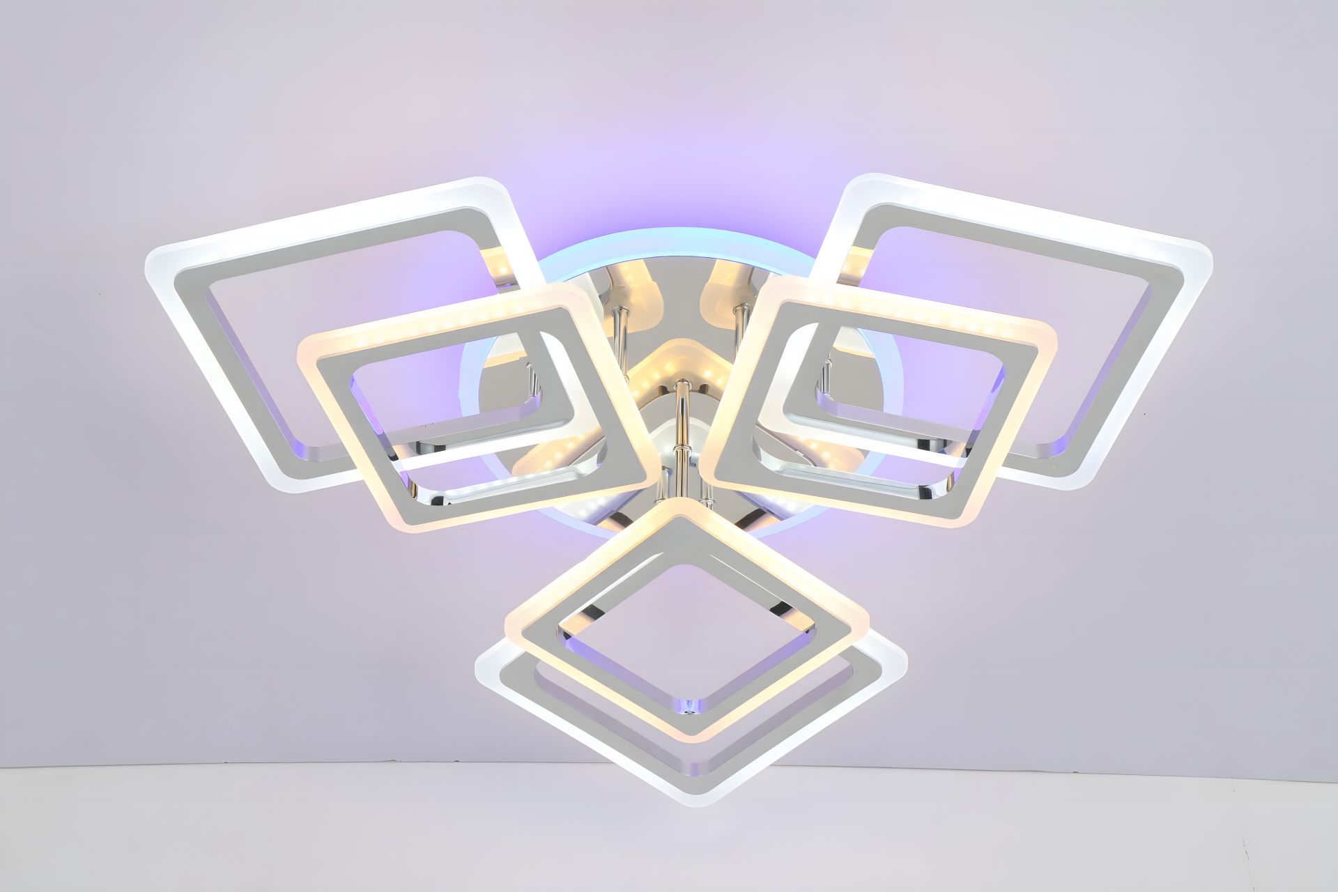 Люстра выполнена в цвете хром, что придаёт ей современности и изысканности. Благодаря большой мощности 168 Вт, она идеально подходит для освещения просторных помещений, таких как гостиные, залы или конференц-залы. Размеры 740x740x60 мм позволяют ей гармонично выглядеть на потолке, не перегружая пространство.