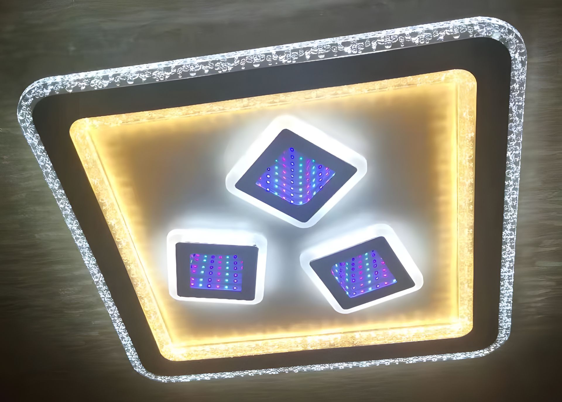 Тип цоколя: диодная лента Количество источников света: 1 Длина, мм: 480 Ширина, мм: 480 Высота, мм: 55 Материал каркаса: металл Материал плафона: акрил Источник света: LED лента Направленность света: рассеянное освещение Тип крепления: планка крепления Мощность, W: 160 Тип: С пультом Назначение: универсальное Стиль: декоративный Форма люстры: нестандартная Применение: Для жилых комнат