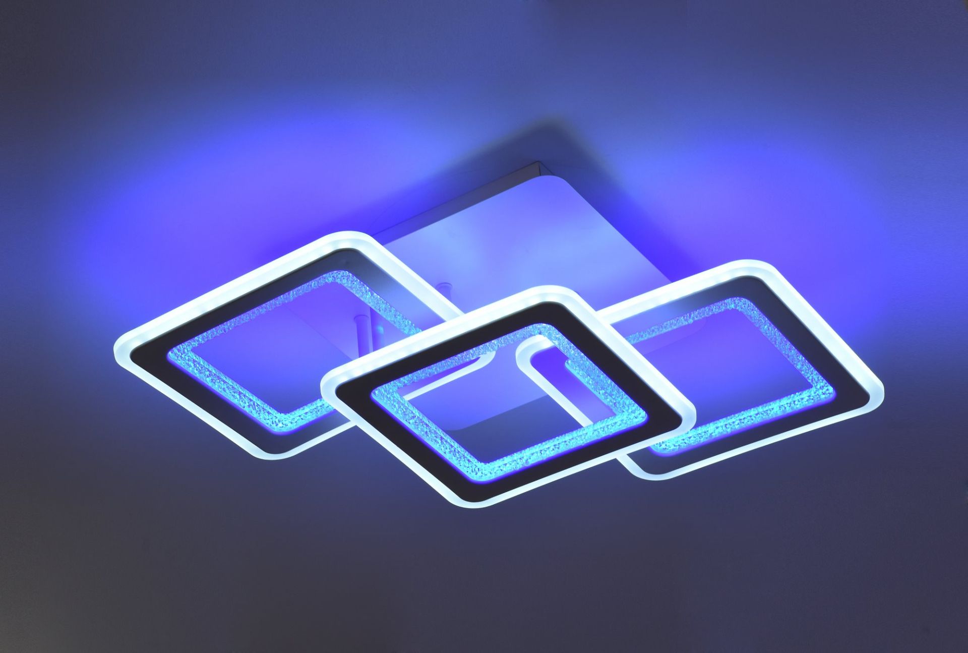 Благодаря пропорциональным размерам – длина 650 мм, ширина 350 мм и высота 120 мм, эта люстра идеально подходит для разных интерьерных стилей, придавая им свежесть и гармонию. Три акриловых плафона квадратной формы приводят к изяществу дизайна, создавая современный вид.