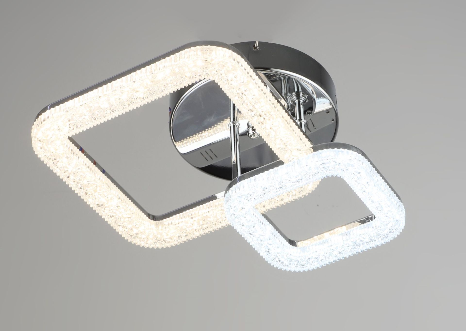 Люстра Sirius B YH899/2 CH изготовлена на основе металлического каркаса с хромовым покрытием, что придает ей стильность и современность. Два акриловых плафона квадратной формы, один больше другого, создают непринужденный и волшебный дизайн, а также помогают равномерно распределить свет.