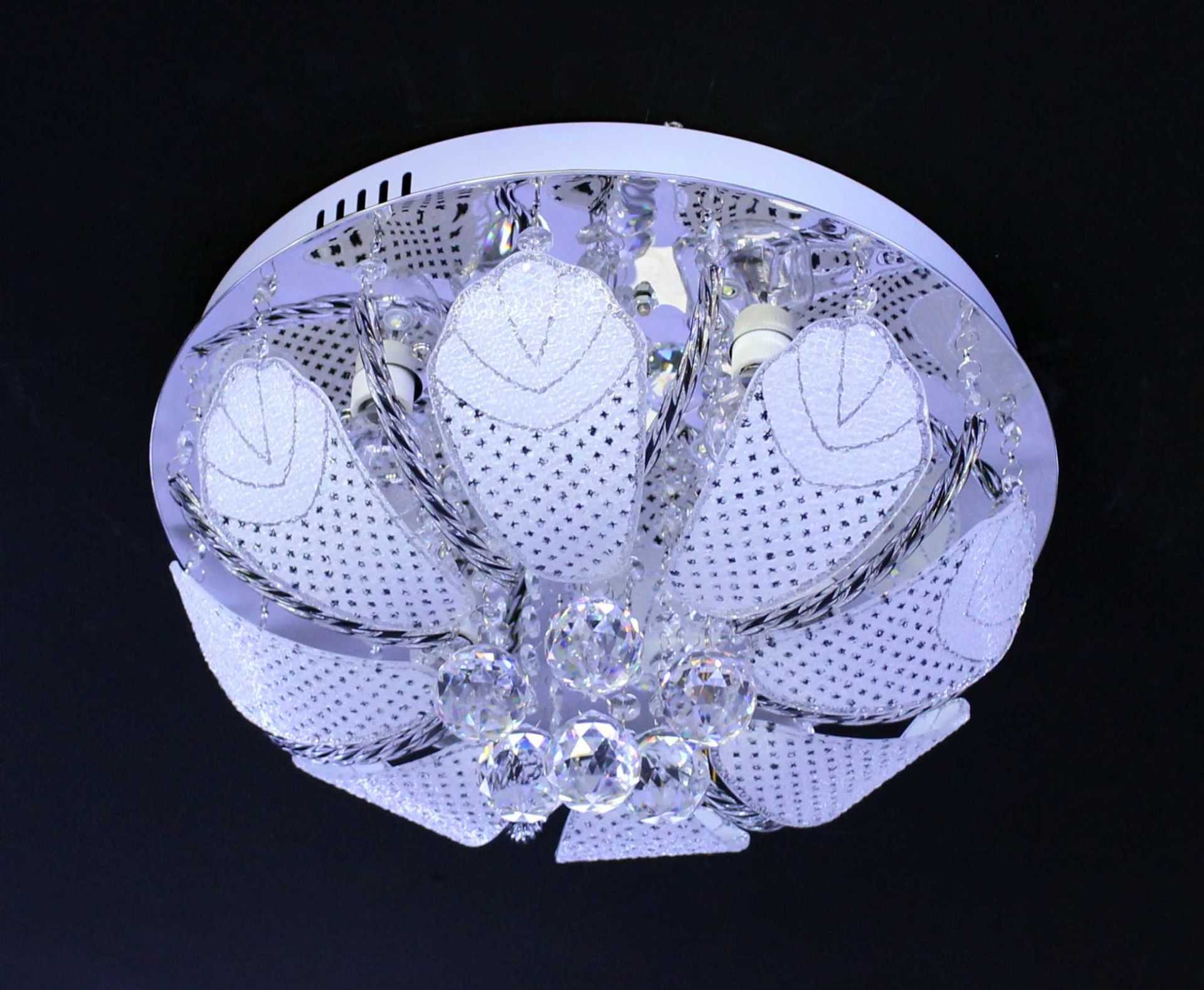 - изысканный дизайн из металла в хромовом цвете и стеклянных плафонов