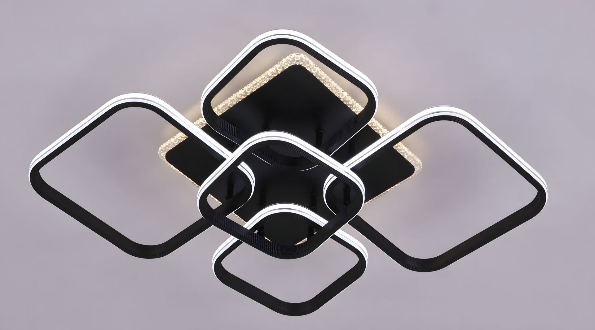 Люстра выполнена в чёрном цвете, что придаёт ей строгий и стильный вид. Благодаря высокой мощности (144W+36W), она идеально подходит для освещения больших помещений, таких как гостиные или залы. Размеры 770x580x130 мм позволяют ей гармонично выглядеть на потолке, не перегружая пространство.