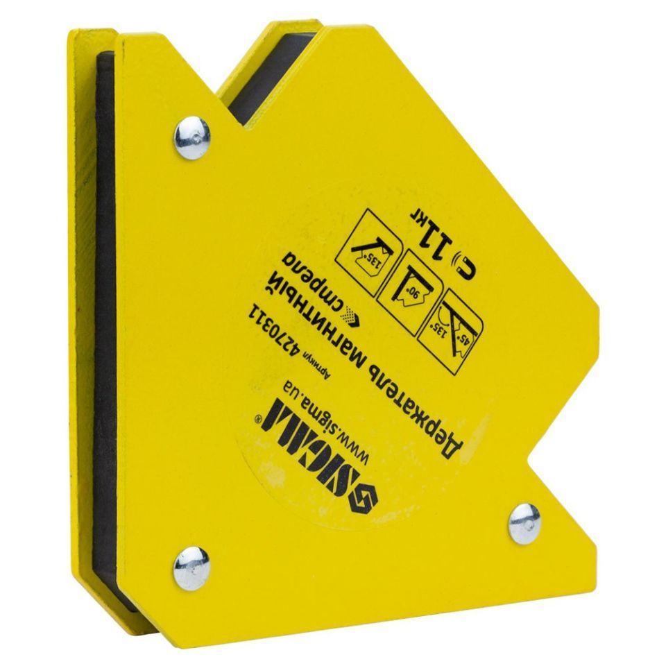 Магнит для сварки стрела 11кг 75×65мм (45°, 90°, 135°) SIGMA (4270311) предназначен для точной фиксации деталей под выставленным, правильным углом при проведении сварочных работ, пайке и других операций во время изготовления стальных металлоконструкций.